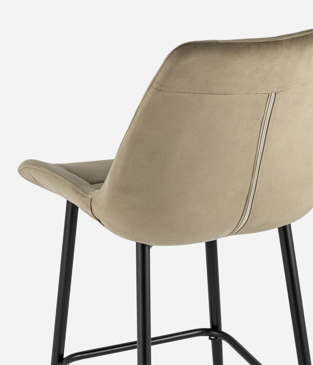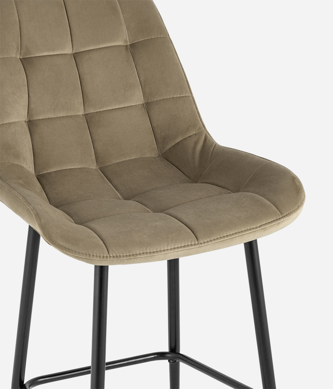 Барный стул в мягкой обивке из велюра без подлокотников. Лаконичный дизайн украсит любой кухонный интерьер.