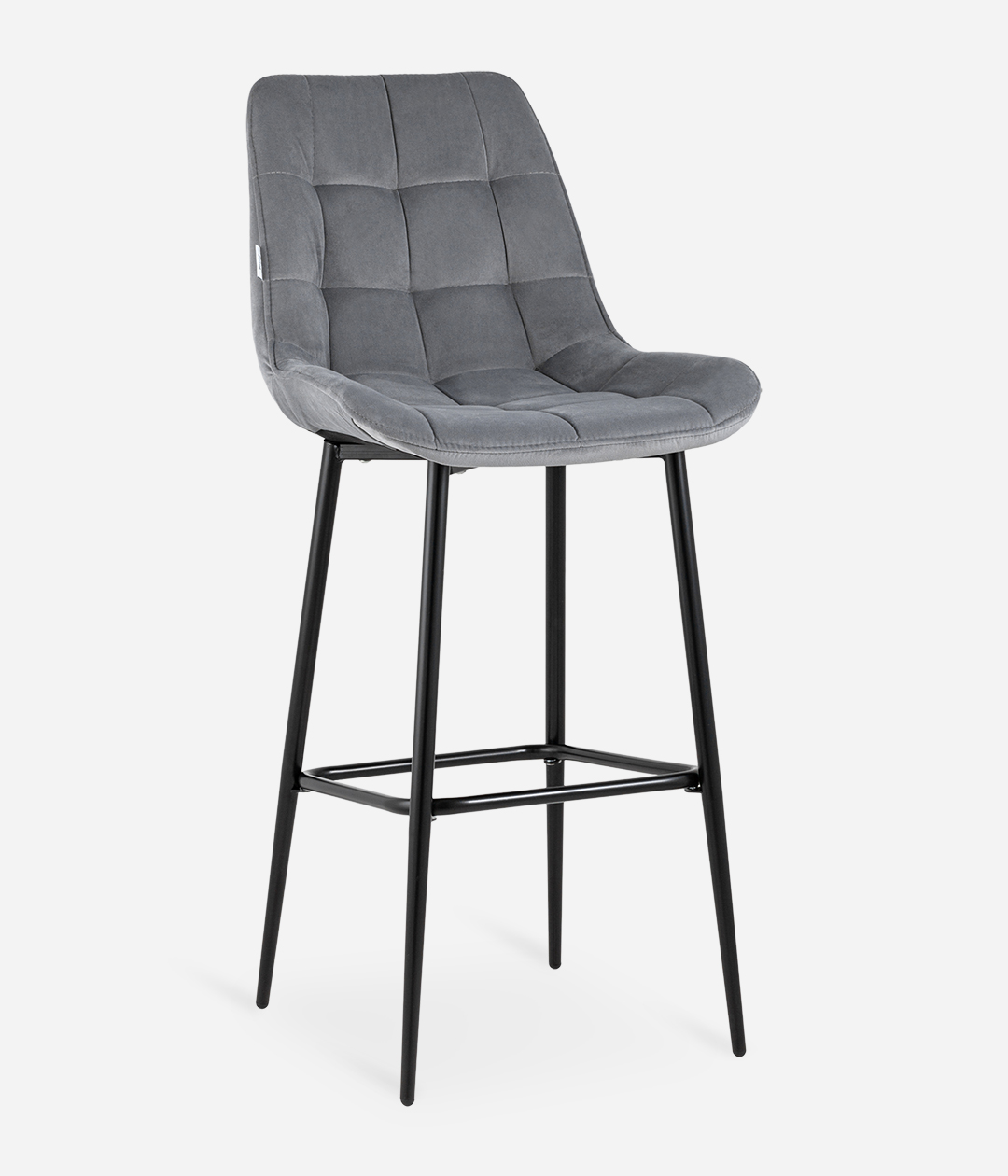 Барный стул в мягкой обивке из велюра без подлокотников. Лаконичный дизайн украсит любой кухонный интерьер.
