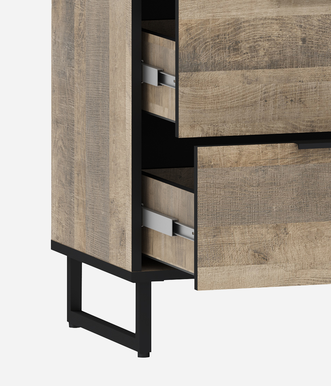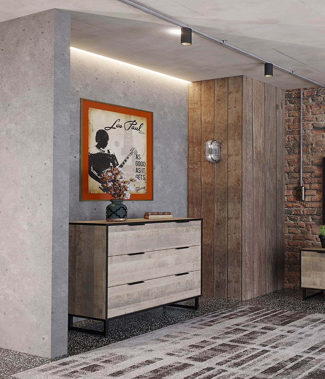 Комод Фолк украсит любое помещение в стилях лофт и минимализм. Модуль отвечает всем современным требованиям к практичности и функциональности. Храните в нём свои вещи и аксессуары и наслаждайтесь теплым сочетанием цветов, которое легко задаст тон интерьеру всего дома.