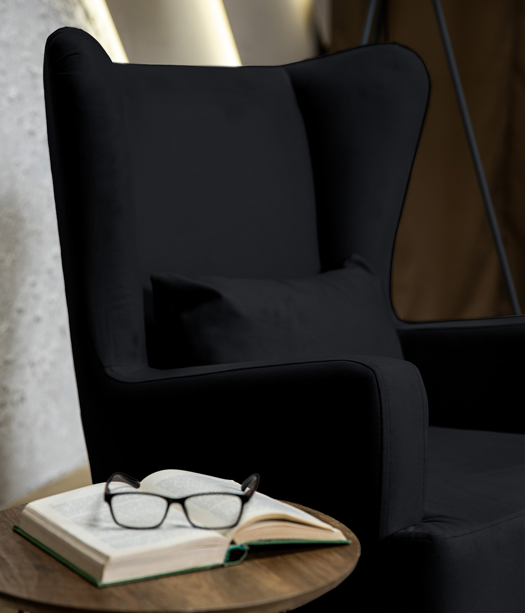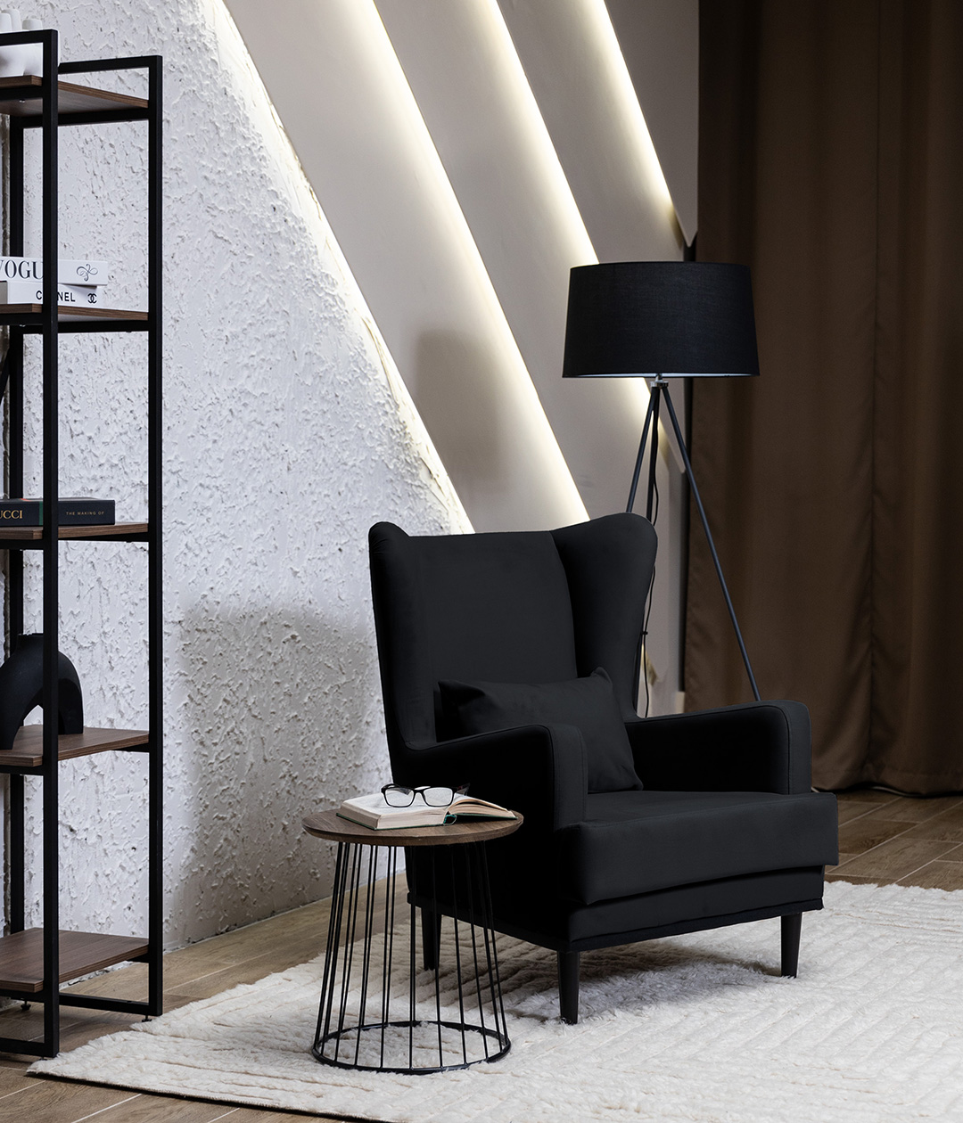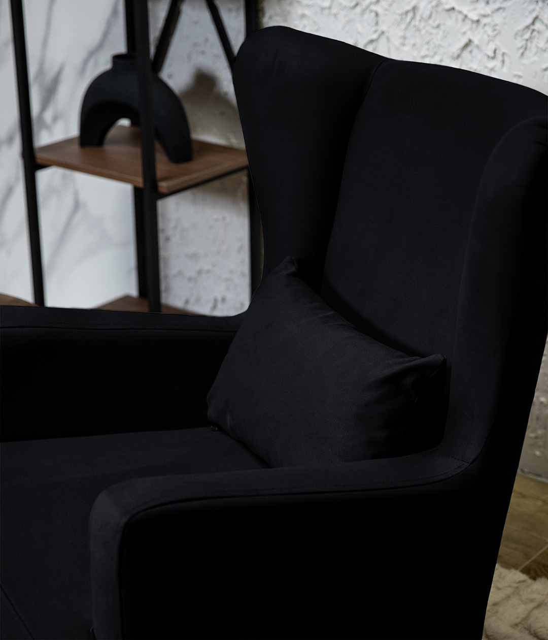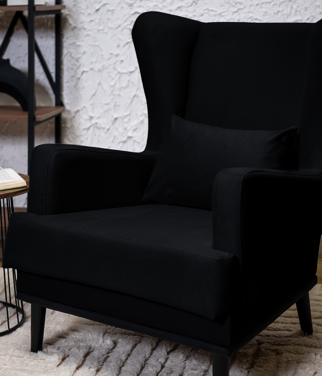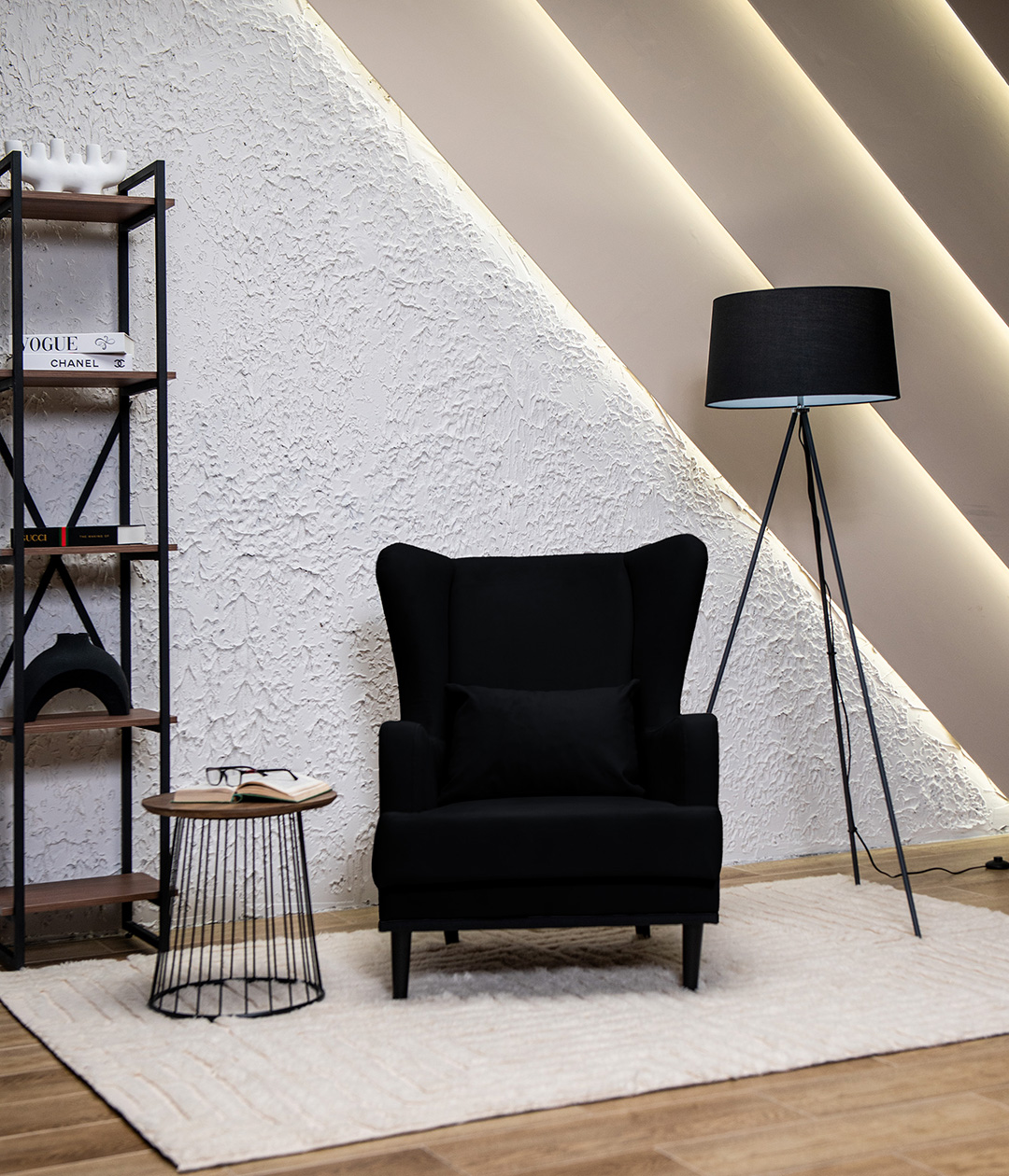 Высокие ножки кресла делают его форму легкой, максимально открывая пространство. К тому же, такая конструкция упрощает уборку, делая доступным напольное покрытие.
