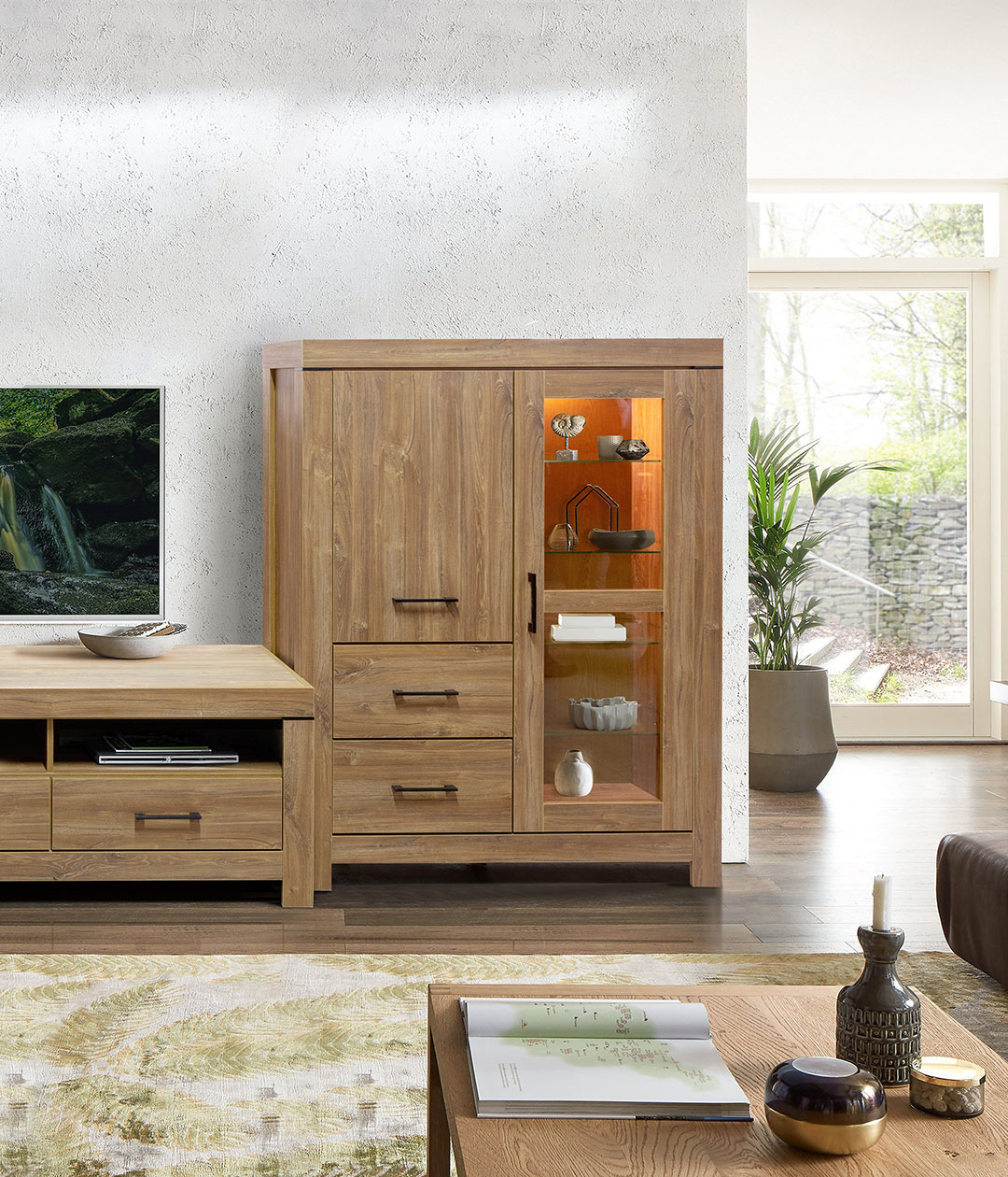 Шкаф Гранде предоставляет еще больше возможностей для визуализации предметов. Отделения со стеклянными дверцами свободно уместят на своих полках коллекционные книги и предметы декора – всё, что представляет ценность и хочется продемонстрировать гостям.