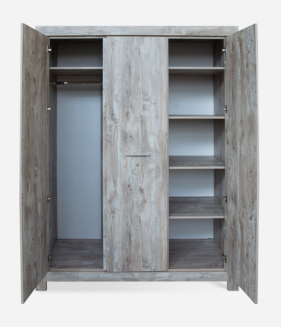 Шкаф для одежды Гранде — компактный, но вместительный модуль, в котором легко найдётся место для повседневной одежды и сезонных вещей. Внутреннее пространство оснащено поперечной штангой для вешалок и несколькими полками.