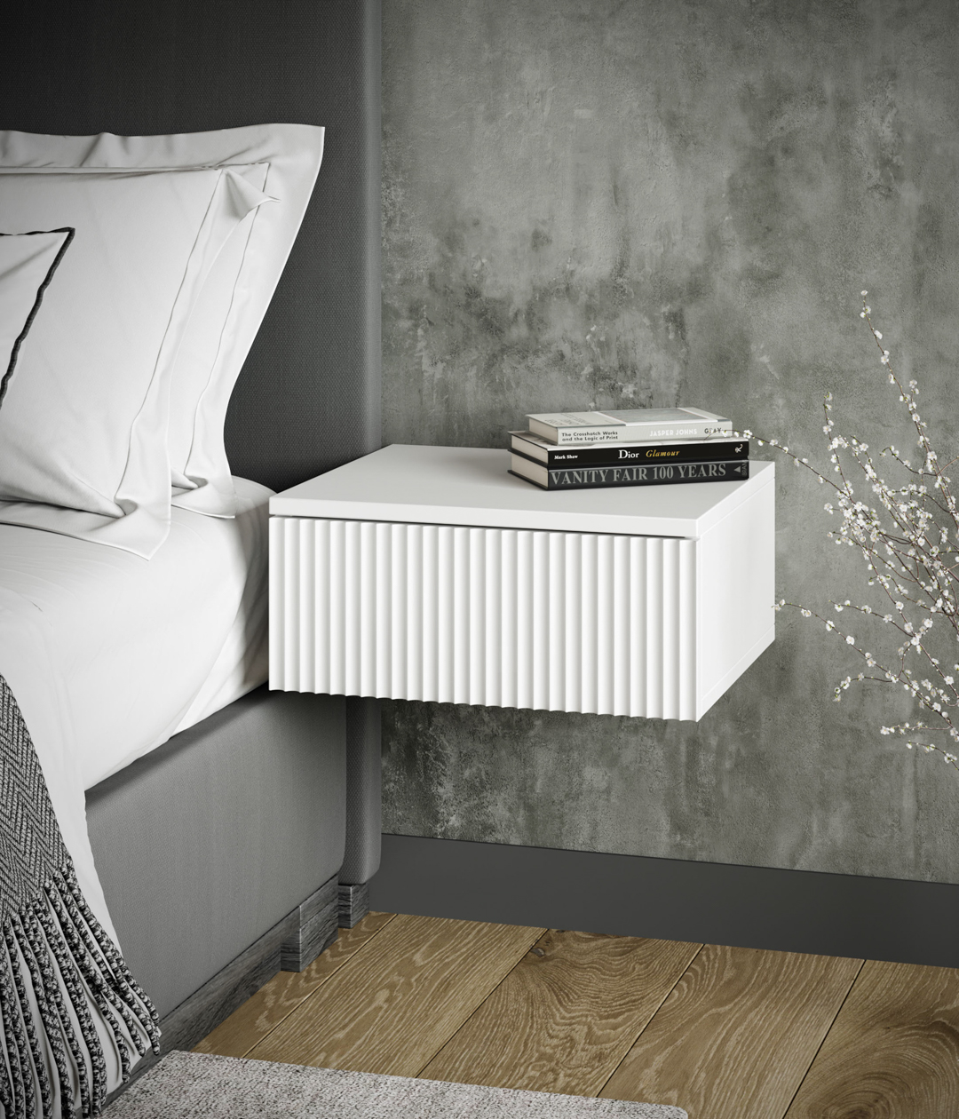 Тумба прикроватная подвесная Ингрия 1 выполнена в скандинавском стиле с оригинальной фрезеровкой, дополнит интерьер любой комнаты. Графитовый, белый или кашемировый цвет тумбы приносит в любое пространство ощущение элегантности и утонченности, а натуральная текстура дуба добавляет теплоты и уюта.
