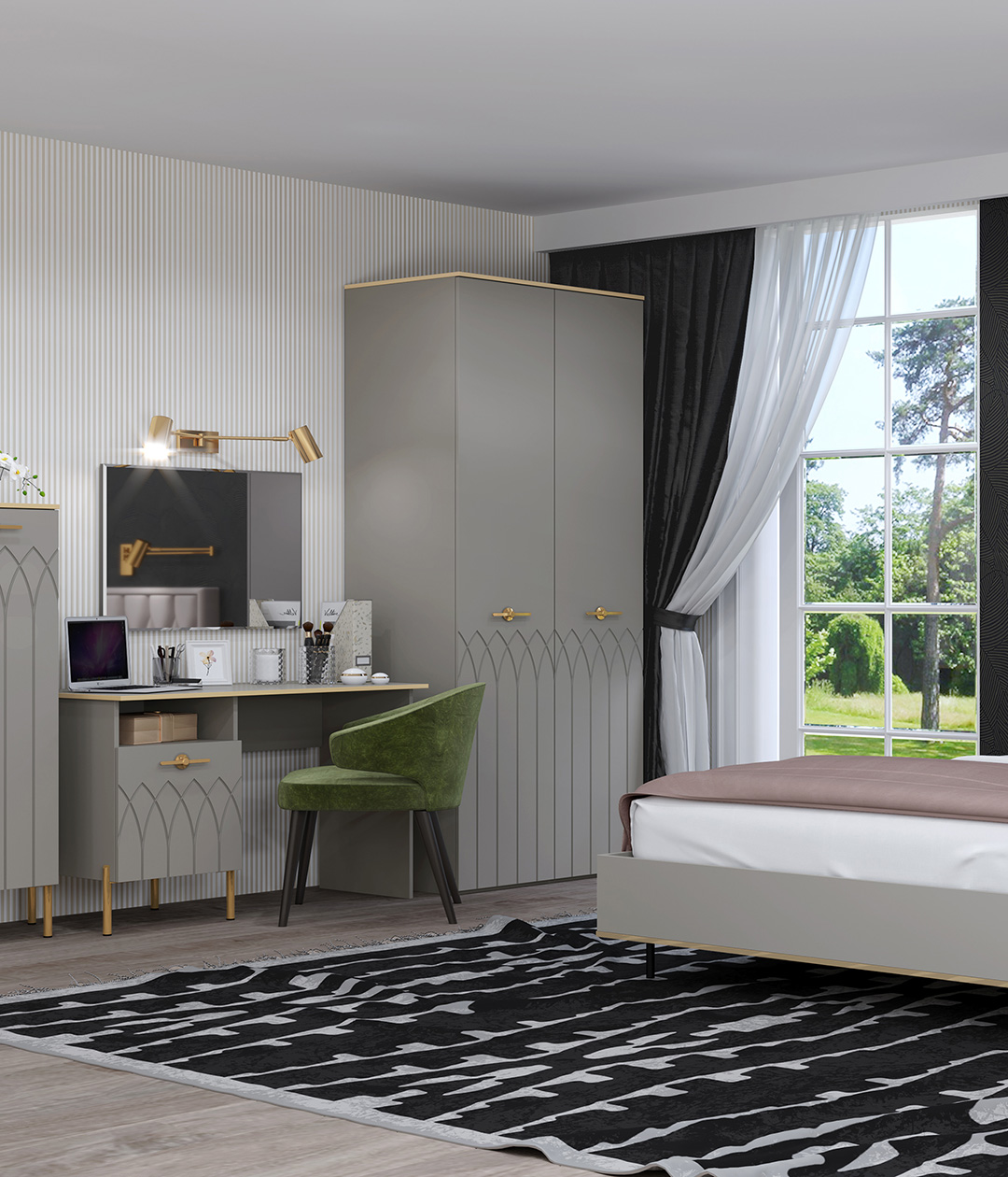 Шкаф Капри имеет конструкцию со штангой и двумя широкими полками, что позволяет хранить вещи на вешалках и в сложенном виде. Двухдверный шкаф высотой 2352 мм позволит аккуратно хранить вещи большой длины, что является важным преимуществом, кроме того мебель большой высоты смотрится очень эффектно и грациозно.