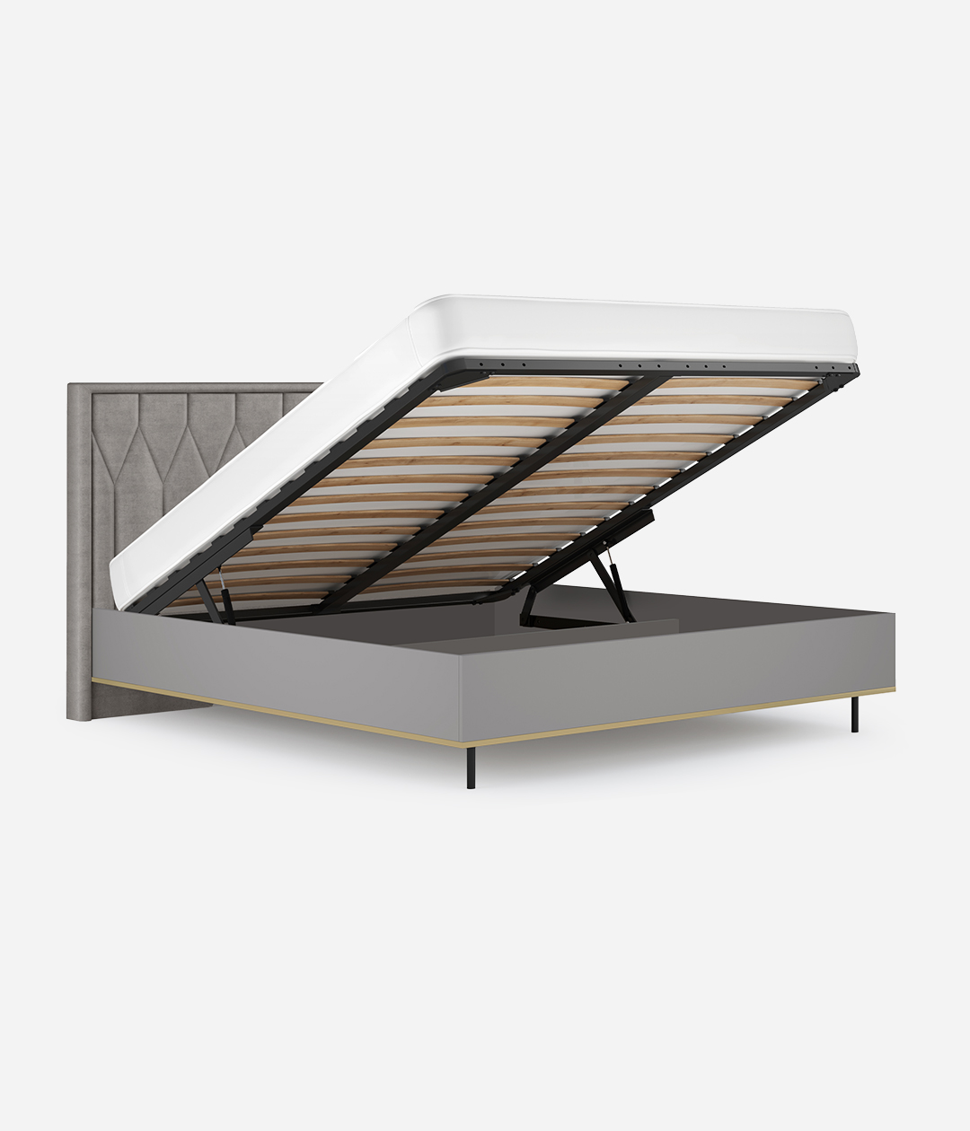 Мягкая кровать «Капри» выполнена из практичной ткани. Модель с высоким изголовьем с декоративными ромбами украсит собой любую современную спальню, станет центром динамичного интерьера. Надёжное основание на ножках и анатомическая решётка на подъёмных газлифтах обеспечат оптимальный уровень комфорта во время сна.