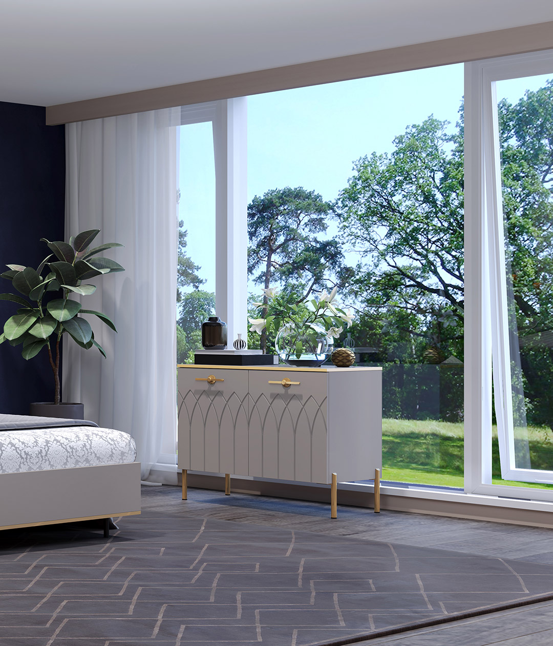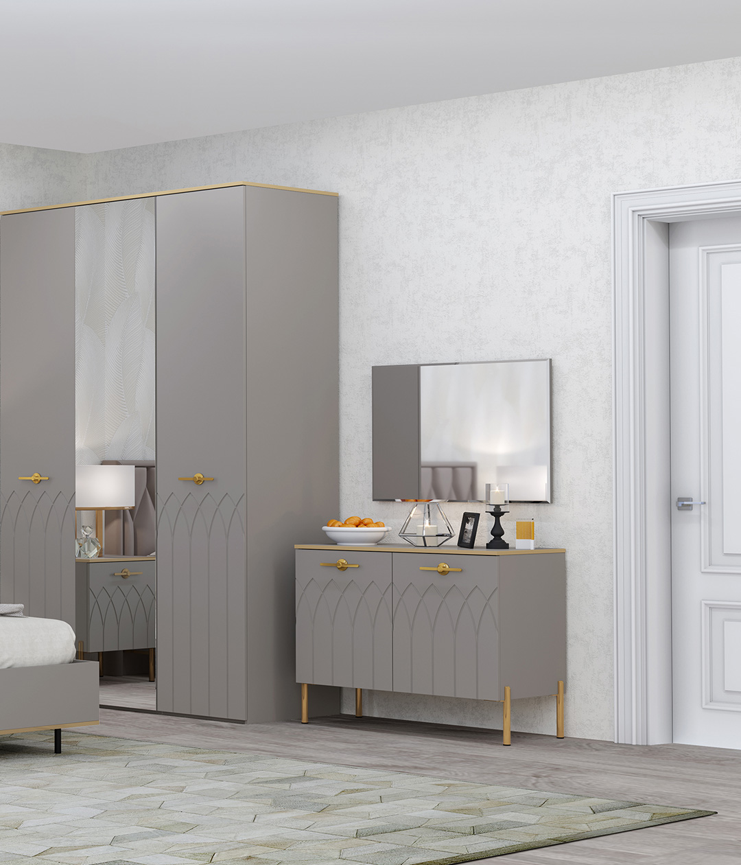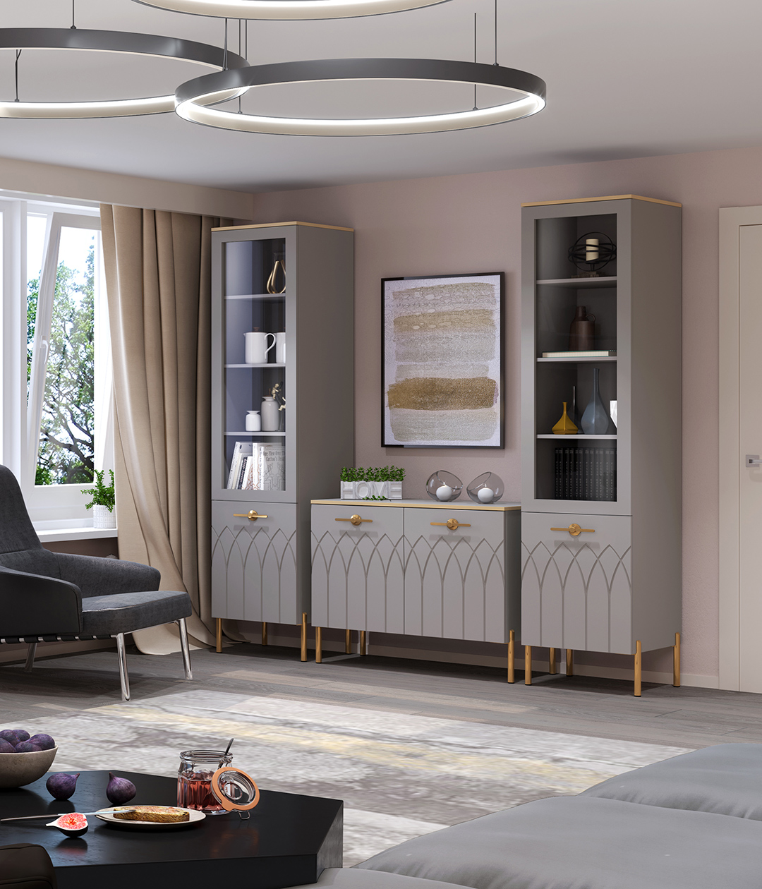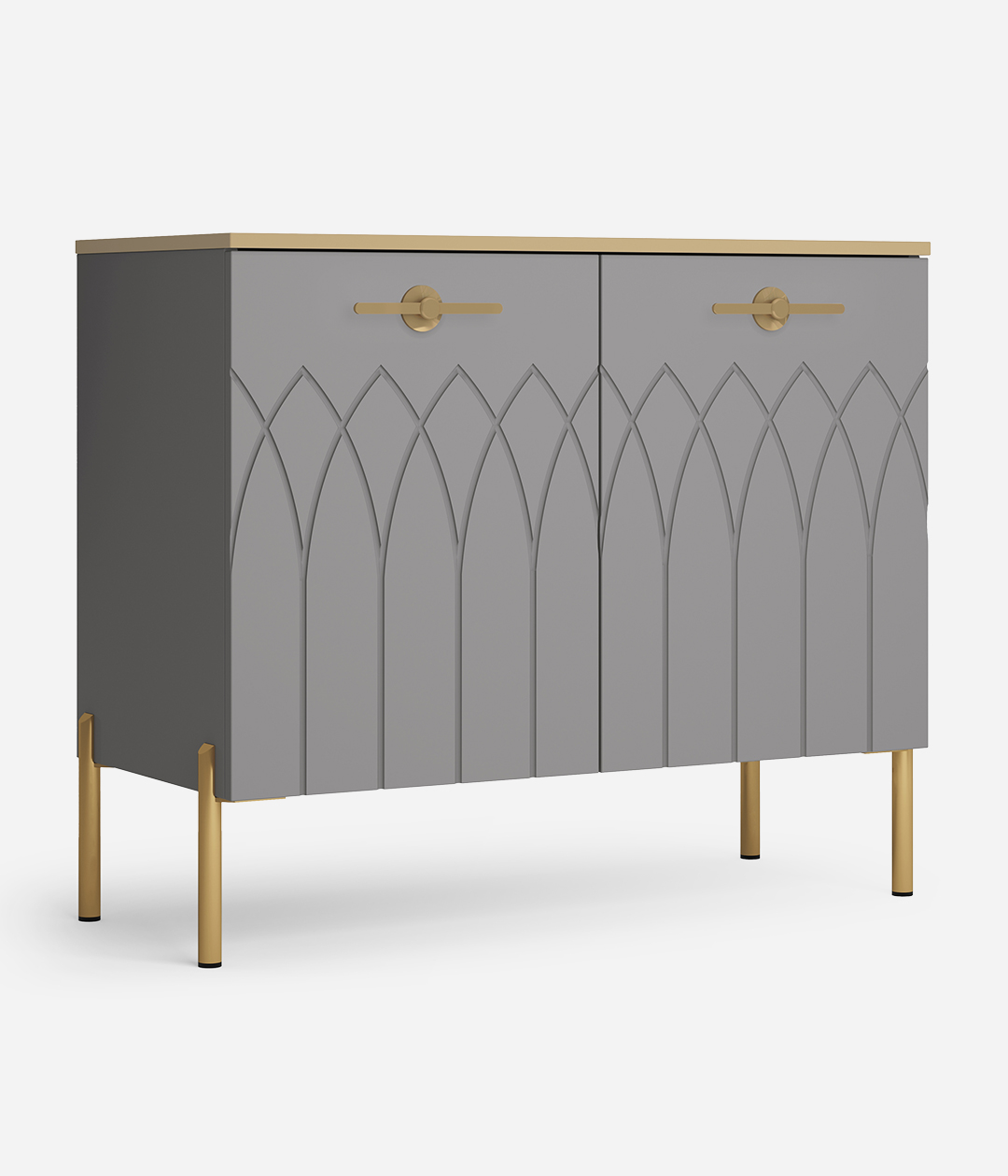 Элегантный и утонченный комод «Капри» несомненно выглядит эффектно. Бархатная текстура цвета мокко великолепно сочетается с изящными опорами в цвете золото.