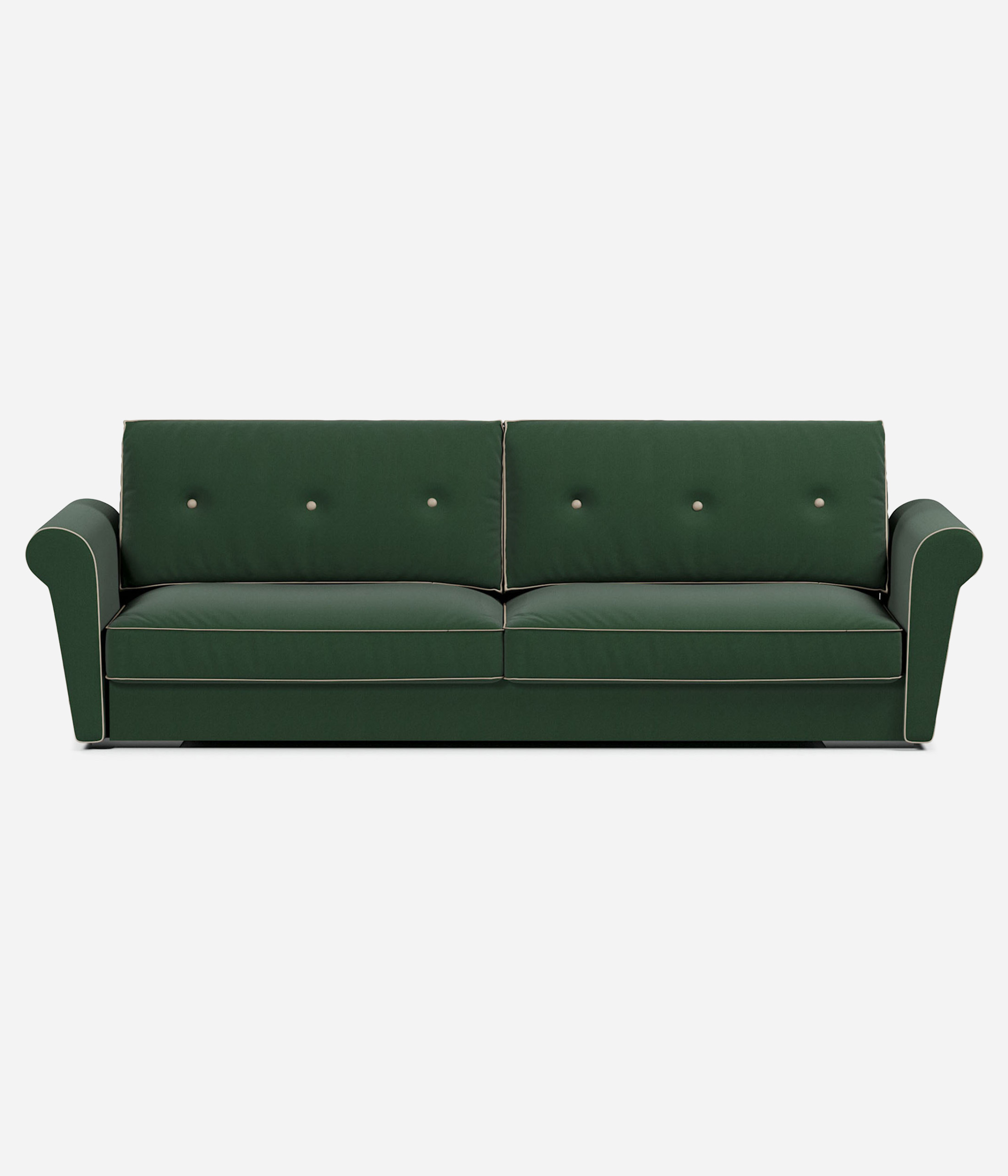 Строгий дизайн и спокойная палитра делаю диван универсальным для любого интерьера, а стильный декор в виде канта, подчеркивает форму и добавляет лаконичность.