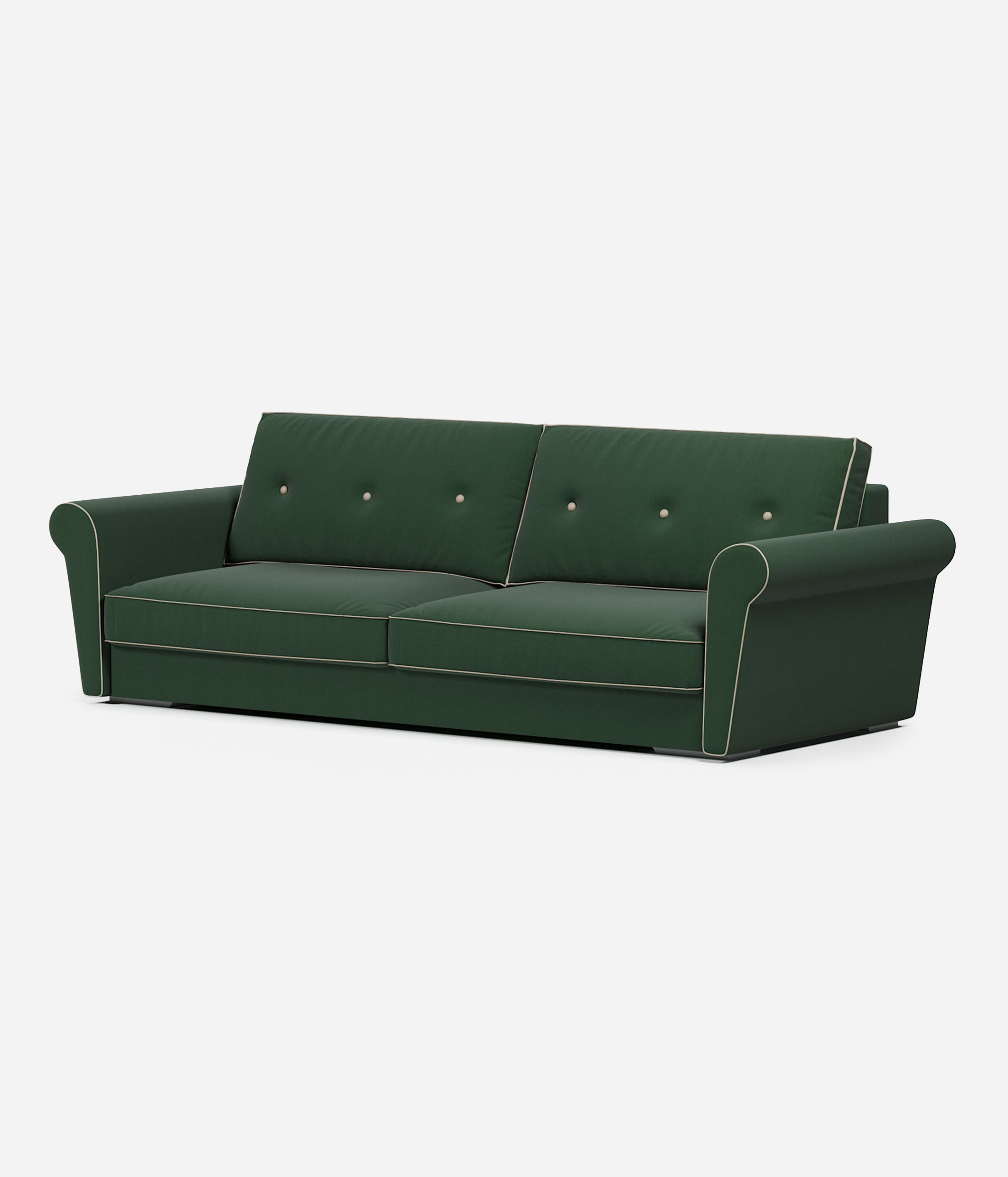 Прямой диван-кровать «Карлстад» выполнен в современном стиле с классическими деталями и декором. Подлокотники изогнутой формы гармонично сочетаются с прямоугольными подушками спинки, украшенными пуговицами. По периметру всех подушек пущен контрастный кант. Диван можно установить в любой современной гостиной или спальне в стиле прованс.
