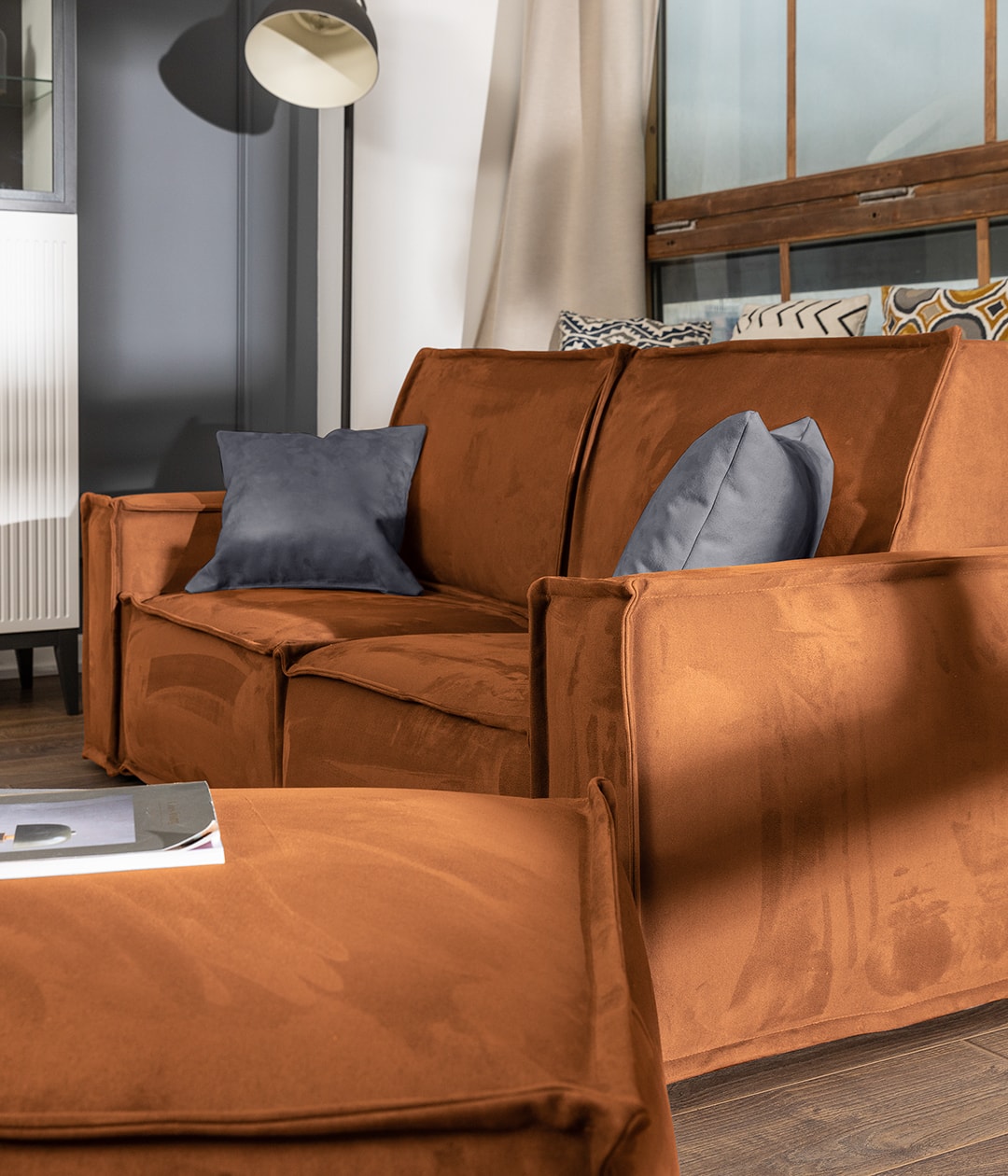 Гостиная Хилтон, диван Кармел мини и пуф Кармел Терракотовый