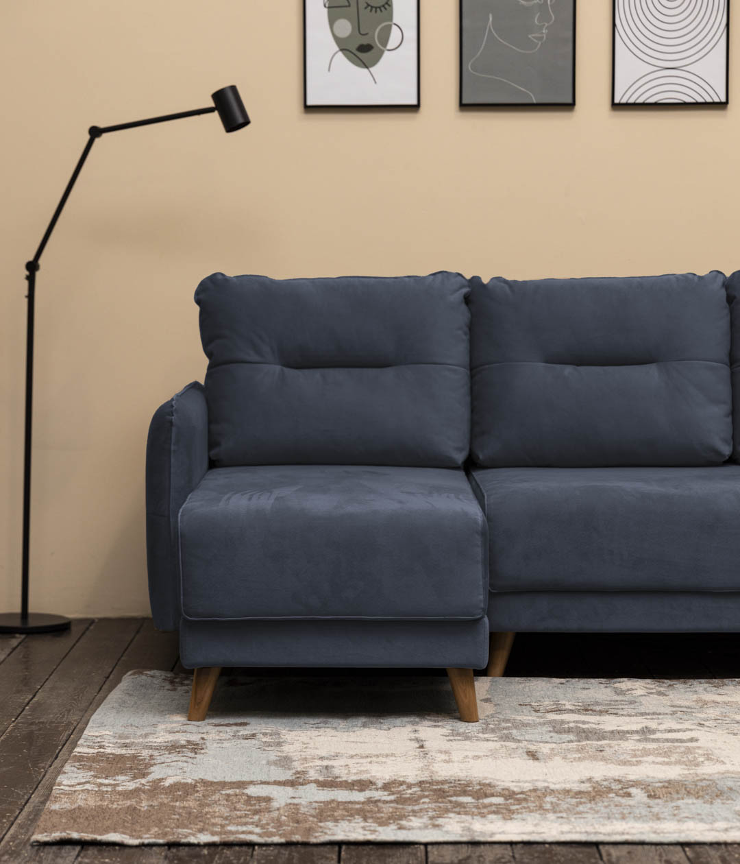 Угловой диван Кэри — идеальный выбор для ценителей скандинавского стиля, где сочетаются натуральность, легкость и практичность. Лаконичный дизайн, высокие деревянные ножки и приятная на ощупь велюровая обивка подчеркивают его элегантность и удобство. Велюр с бархатистой структурой устойчив к когтям домашних питомцев, защищая диван от затяжек и повреждений. Высокие ножки не только облегчают уборку, но и визуально расширяют пространство, а использование натурального дерева придает интерьеру ощущение естественной гармонии.