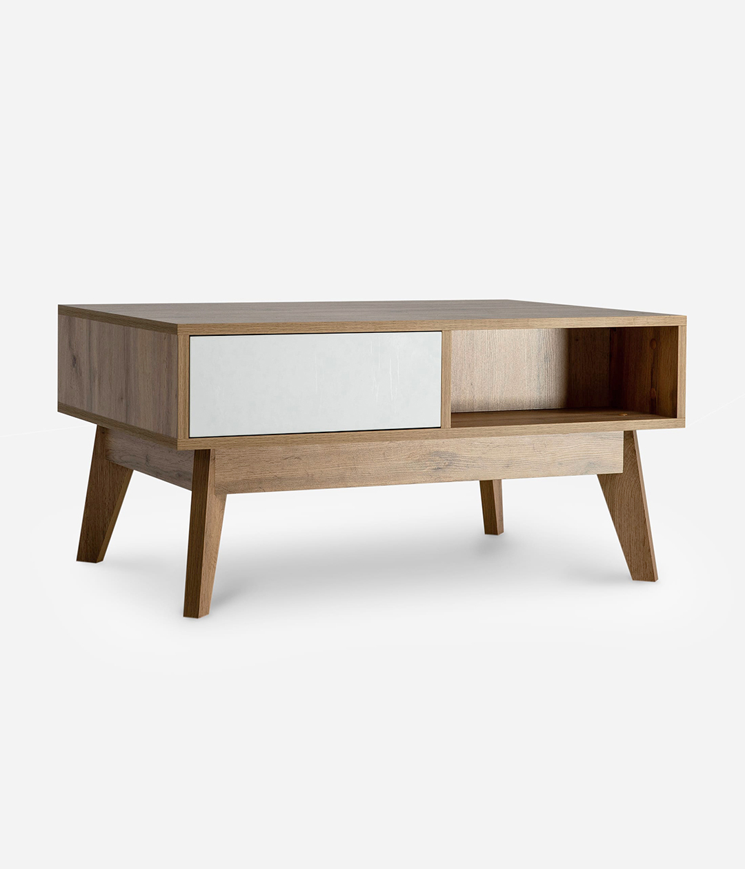 Функциональность и практичность — именно так можно охарактеризовать стол Хелен. Модель отличается компактными размерами — и будет хорошим решением для небольшой гостиной. При создании модели дизайнеры решили полностью отказаться от использования наружной фурнитуры, заменив ее механизмами push to open. Благодаря такому решению, стол Хелен приобрёл не только лаконичность, но и стиль. Нотку винтажности модели придают расположенные под углом ножки древесного оттенка.