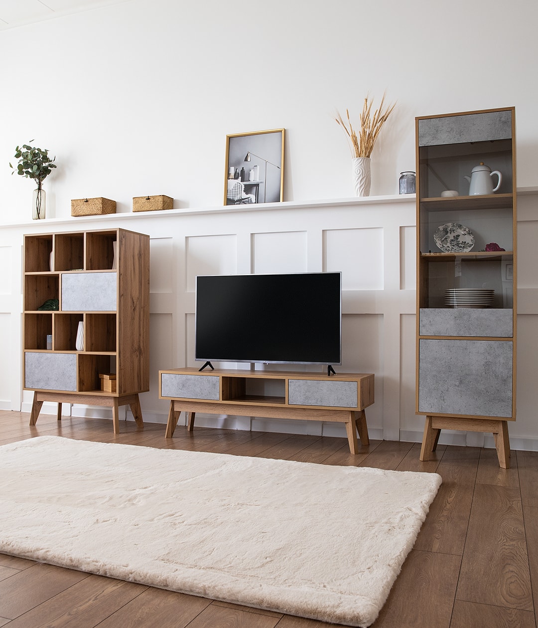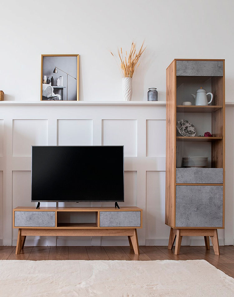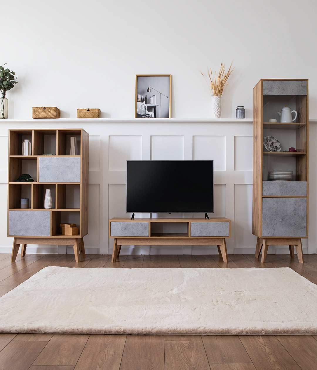 Каждый владелец стремиться сделать свой интерьер гостиной не только привлекательным, но и гармоничным. Идеальным вариантом для этого является приобретение модульной гостиной Хелен, композиция 1, выполненной в современном стиле. В дизайне мебели, вошедших в состав композиции, отсутствуют излишества, которые перегружают облик гостиной. Нет здесь и внешней фурнитуры, из-за чего мебель приобретает нотку оригинальности.