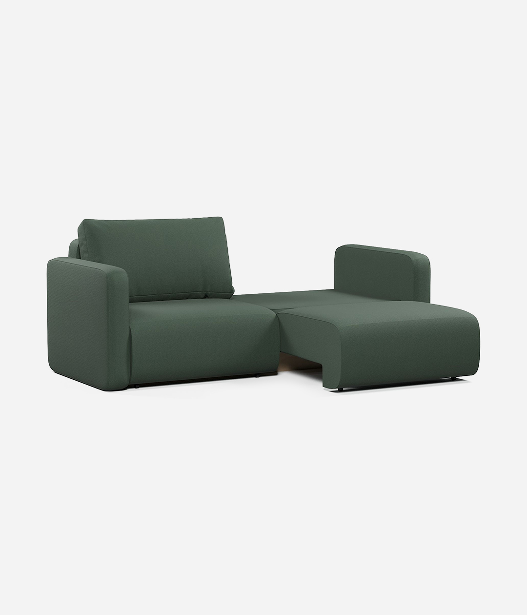 Диван раскладывается секционно. Выдвинув одну сторону секции, диван можно сделать угловым.