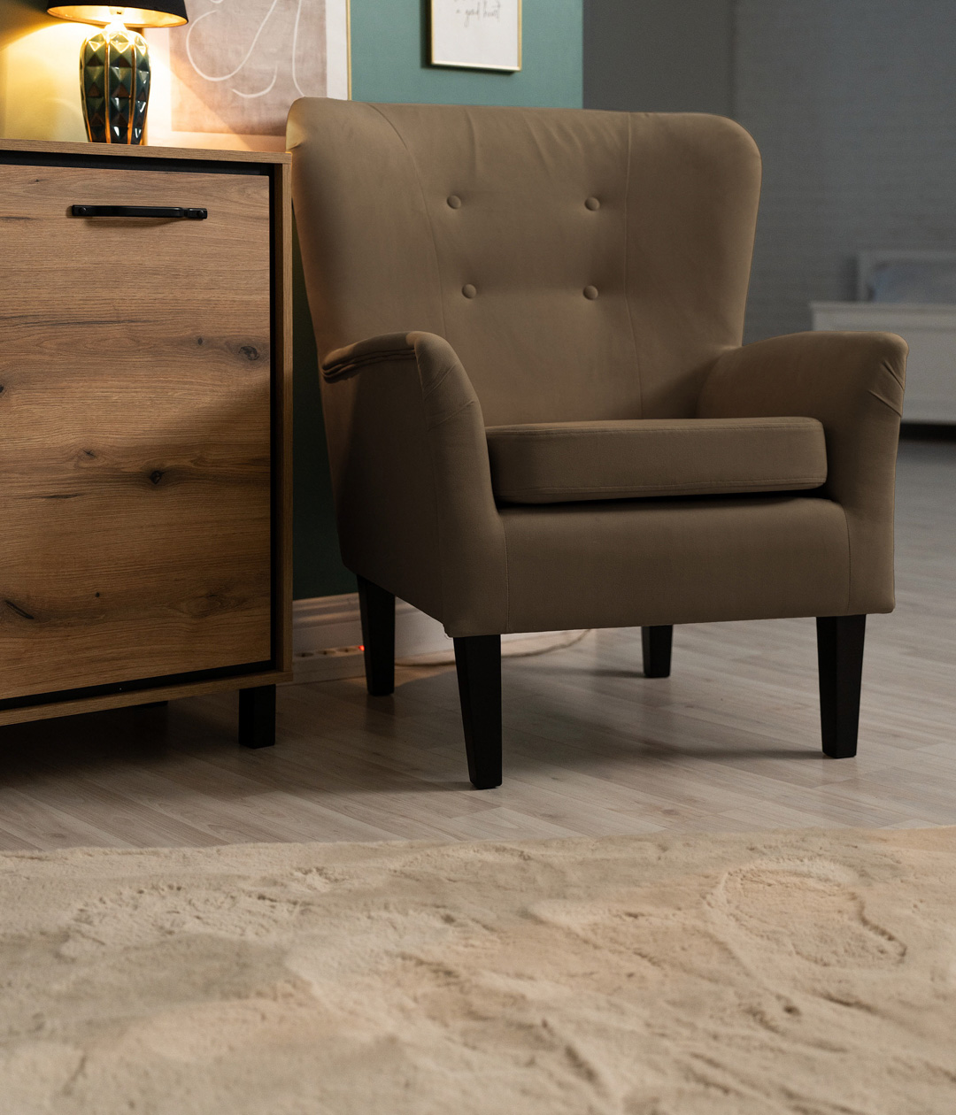Придайте вашему интерьеру свежий акцент с креслом Клей в скандинавском стиле. Высокие ножки создают ощущение легкости, а спинка с каретной стяжкой и интересные штрихи на подлокотниках добавляют изысканности. Обивка из рогожки придаёт текстурный шарм и долговечность. Мягкое сиденье гарантирует комфорт, идеально вписываясь в современные и минималистичные пространства. Это кресло станет стильным и удобным дополнением вашего дома, сочетая элегантность и практичность.