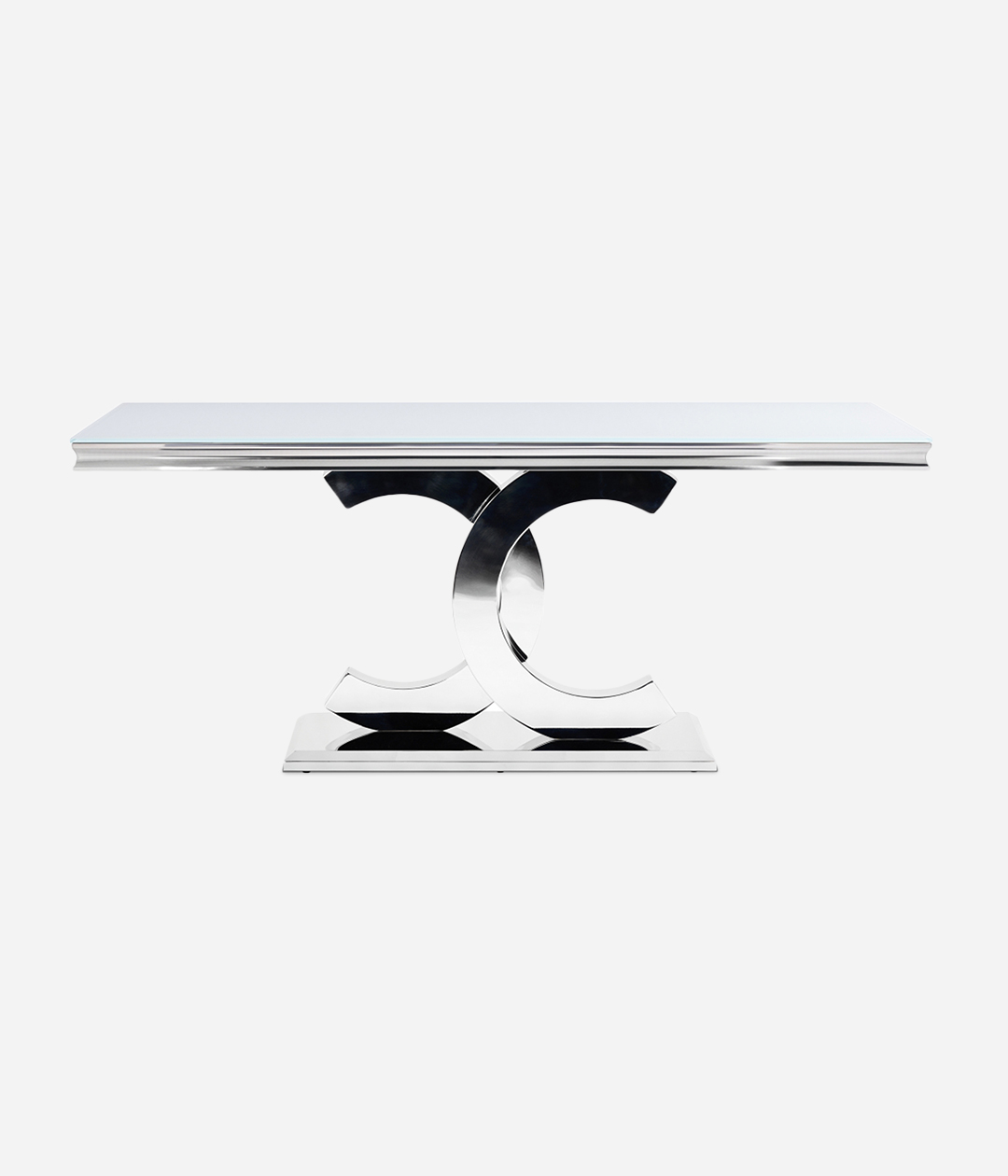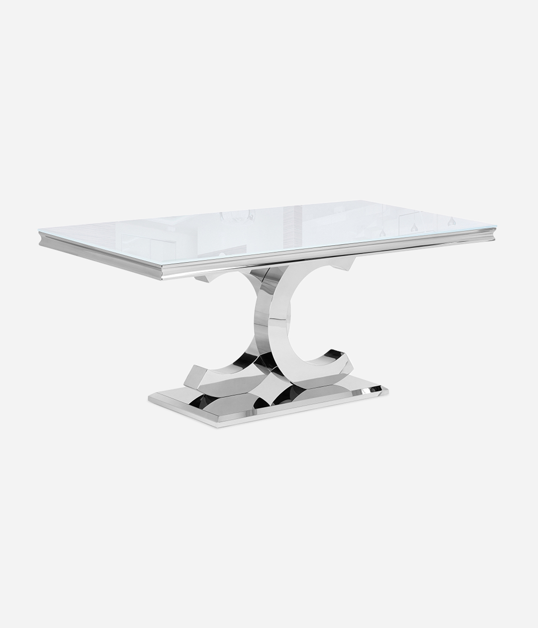 Стол на тумбе Klod - это невероятно эффектный предмет интерьера. Смелое исполнение в белом цвете и присутствие хромированных элементов в конструкции задают общую стилистику стола.