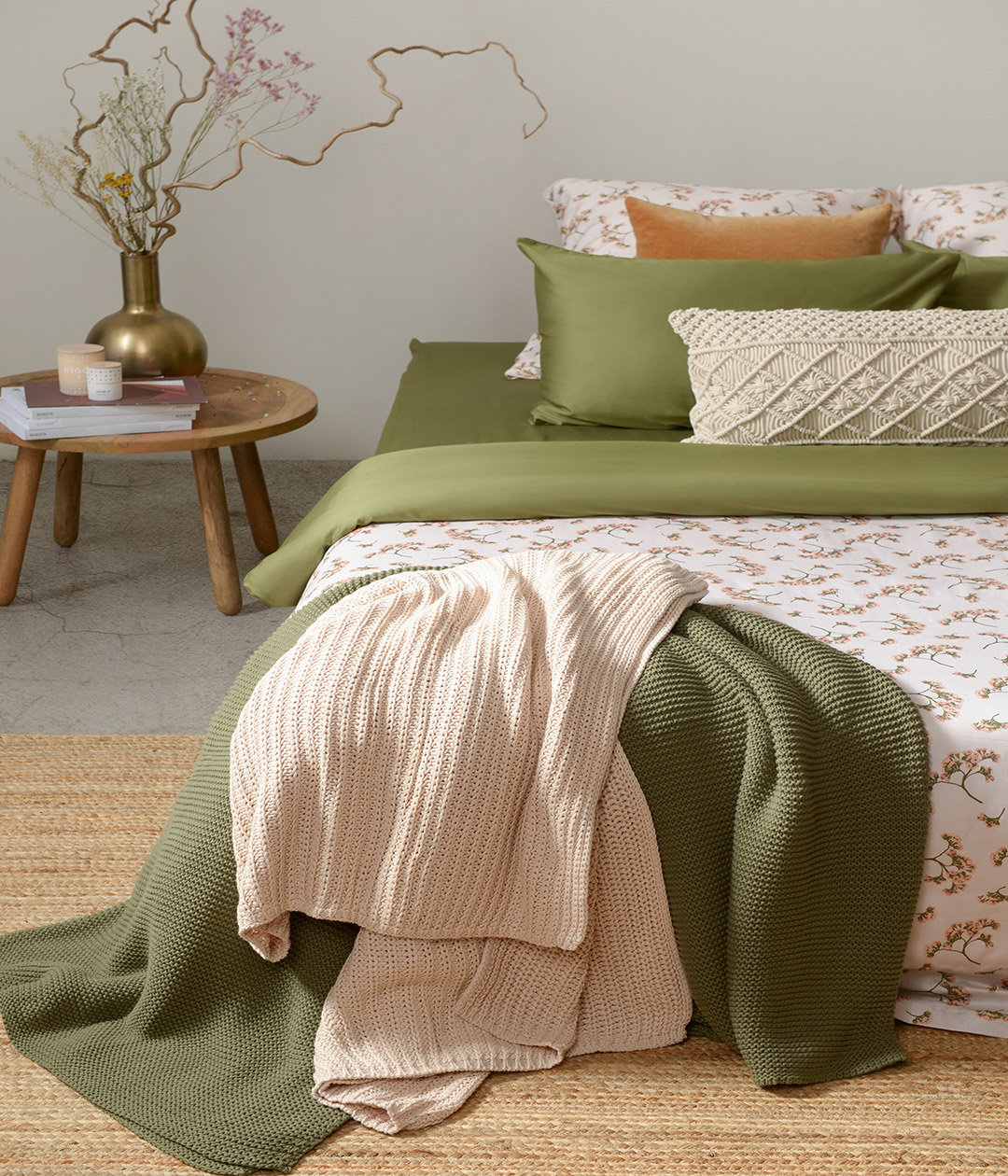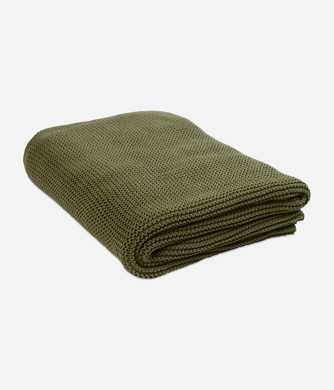 Коллекция Essential из хлопка жемчужной вязки оливкового цвета 130х180