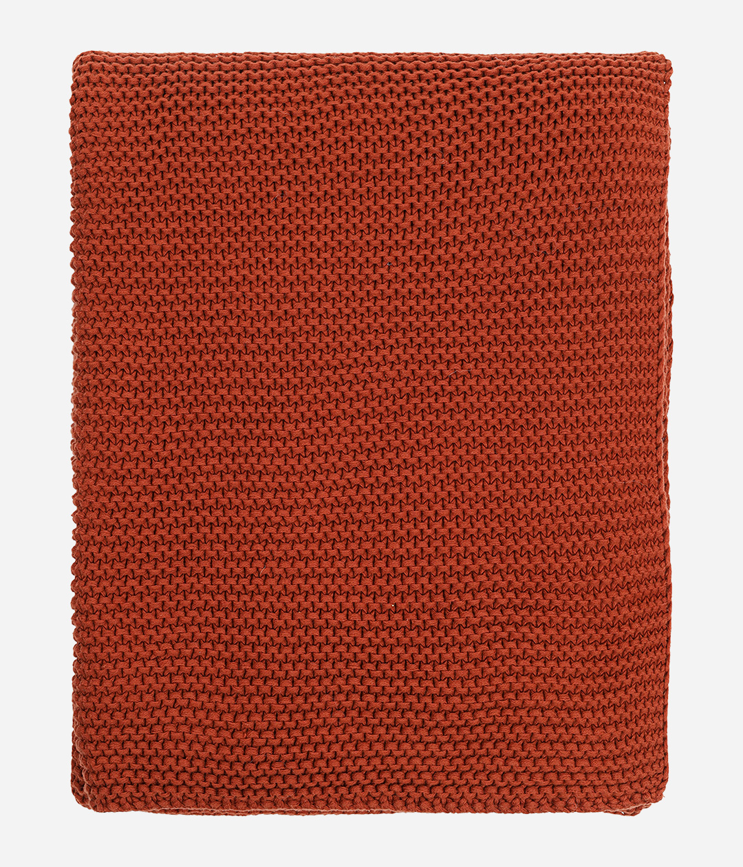 Плед терракотового цвета из хлопка жемчужной вязки из коллекции Essential – стильный аксессуар для спальни, гостиной или детской комнаты.