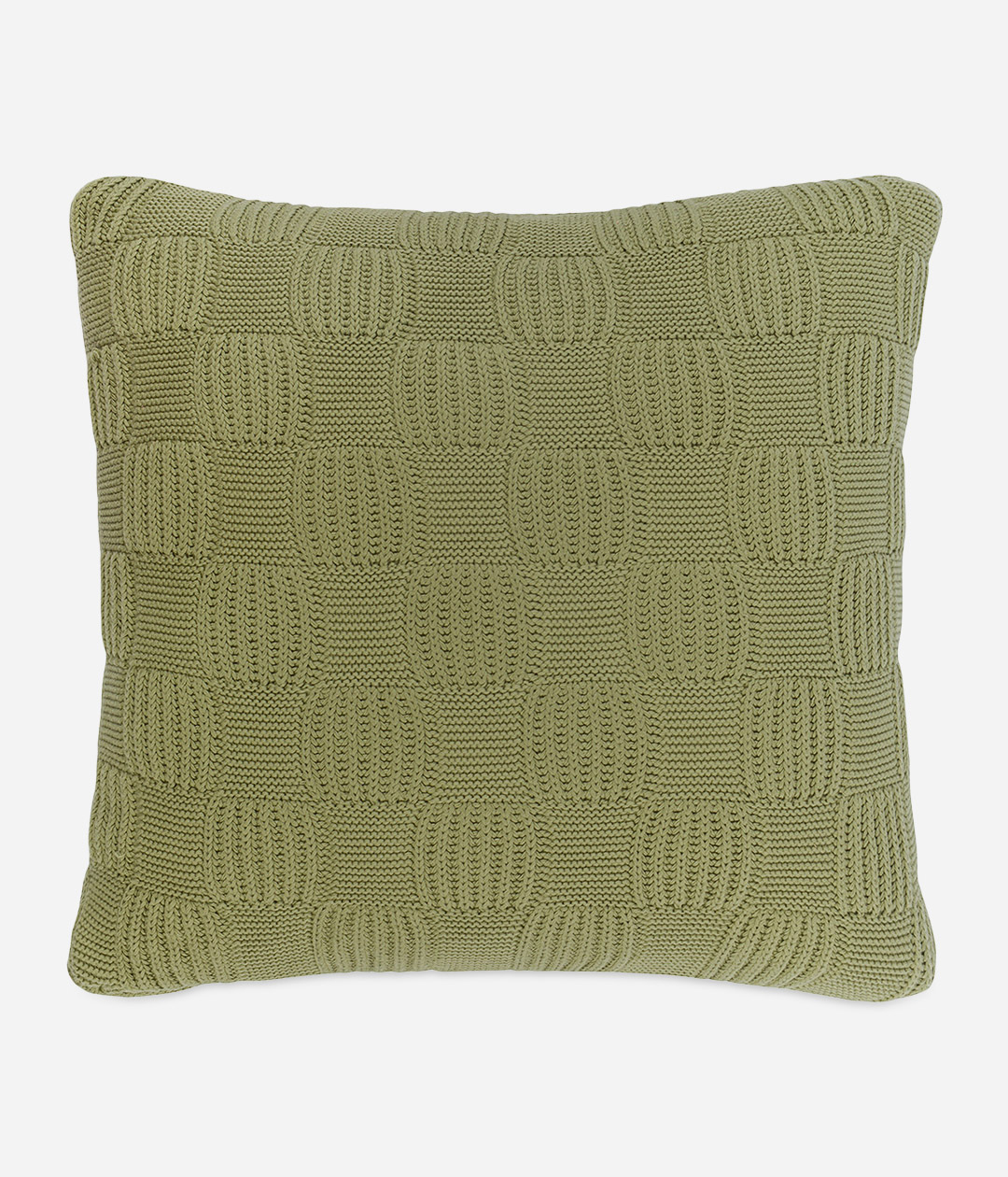 Двусторонняя подушка из хлопка рельефной вязки травянисто-зеленого цвета из коллекции Essential – стильный и практичный домашний текстиль, который создан, чтобы дарить комфорт и наполнять любое пространство уютом.