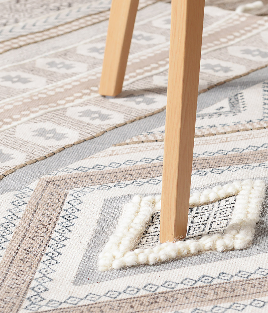 Ковер из хлопка, шерсти и джута с геометрическим орнаментом из коллекции Ethnic нейтрального цвета впишется в любой интерьер и станет необычным акцентом.
