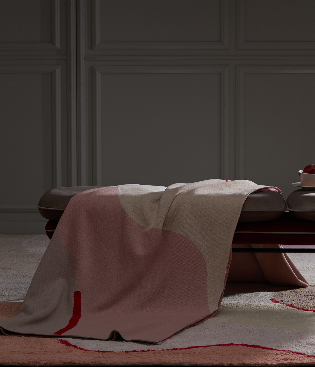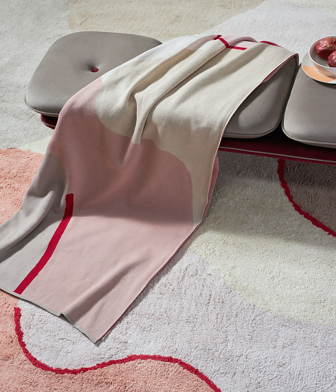 Плед из хлопка с авторским принтом бежевого цвета из коллекции Freak Fruit станет акцентным элементом в интерьере спальни или гостиной.