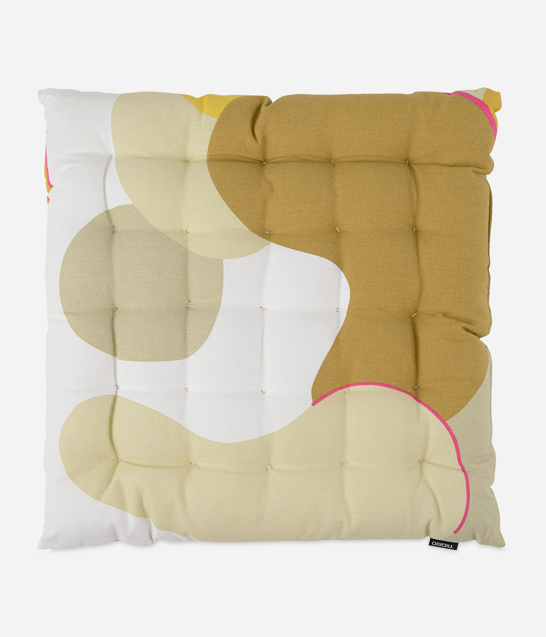 Подушка на стул из хлопка горчичного цвета с авторским принтом из коллекции Freak Fruit - практичное и стильное украшение кухонной мебели. Абстрактный принт не имеет повторяющегося раппорта и представляет собой единую законченную картину.