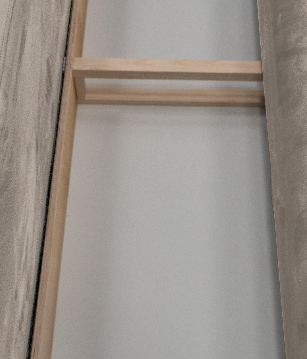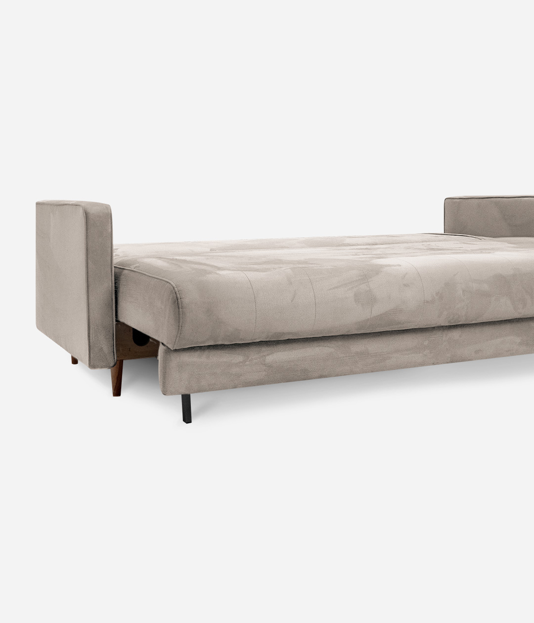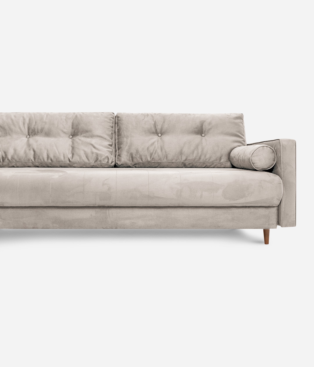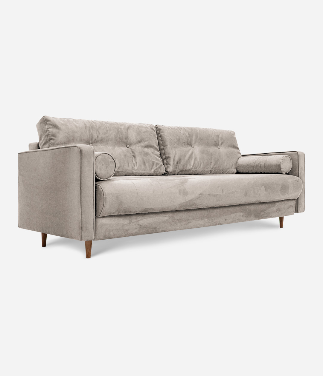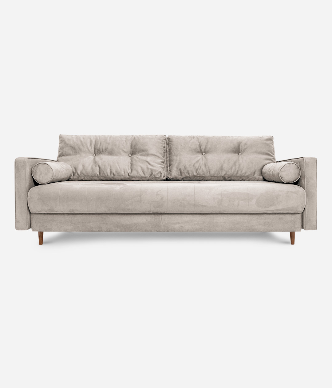 Высокие ножки дивана делают его форму легкой, максимально открывая пространство. А натуральное дерево подчеркивает естественность материалов. Кроме того, такая конструкция упрощает уборку, делая доступным напольное покрытие.