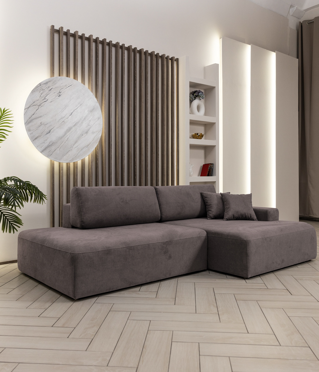 Диван Корнуолл — это истинное воплощение лаконичного дизайна, где каждая деталь продумана до мелочей. Его плавные формы и мягкие подушки создают гармонию между комфортом и эстетикой. Минималистичный стиль подчеркивает элегантность, добавляя в интерьер атмосферу непринужденности и уюта.