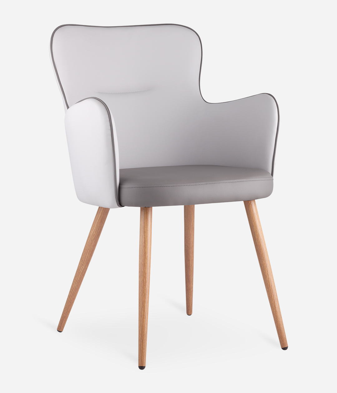 Стильный и мягкий стул имеет подлокотники и высокую спинку, что делают его уютным и удобным местом для отдыха.