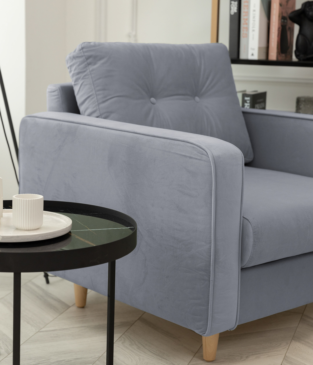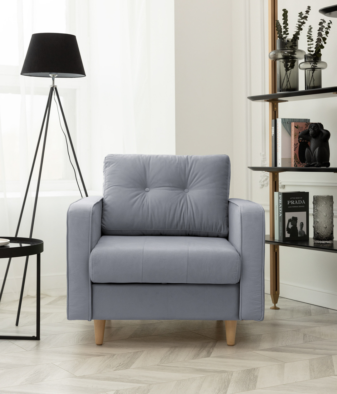Добавьте в ваш дом уют и стиль с креслом Крейт в скандинавском дизайне. Мягкий велюр легко чистится, что делает кресло удобным в повседневном использовании. Прочная основа из массива бука обеспечивает надежность, а высокие деревянные ножки придают модели изящный и современный вид. Благодаря анатомически продуманной конструкции, кресло Крейт подарит вам комфорт и расслабление. Идеальный выбор для тех, кто ценит сочетание эстетики и удобства.