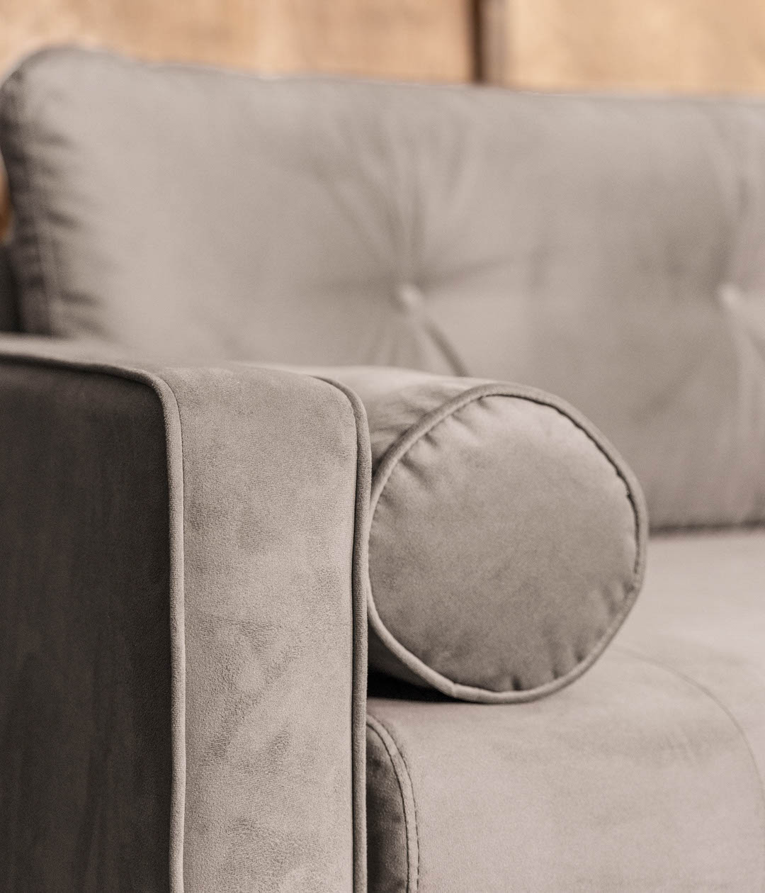 Высокие ножки дивана делают его форму легкой, максимально открывая пространство. А натуральное дерево подчеркивает естественность материалов. Кроме того, такая конструкция упрощает уборку, делая доступным напольное покрытие.