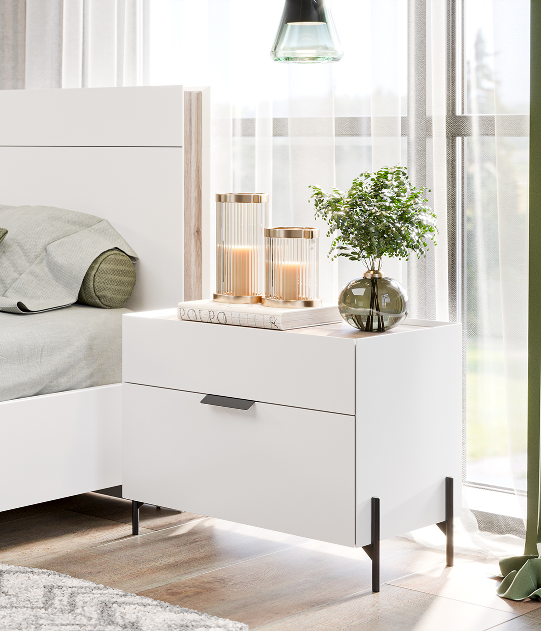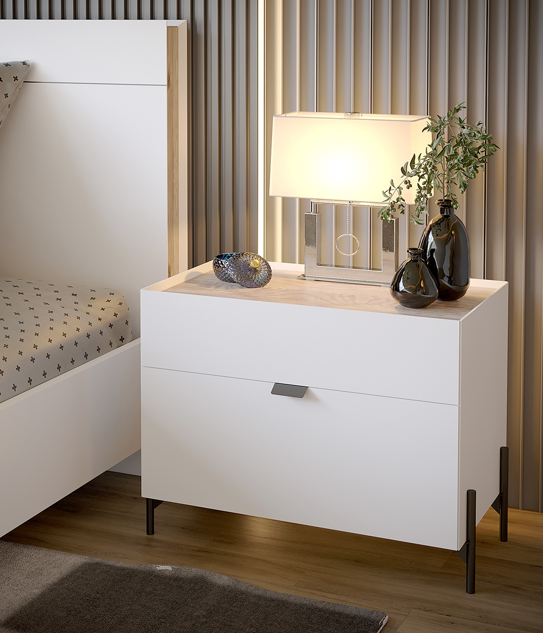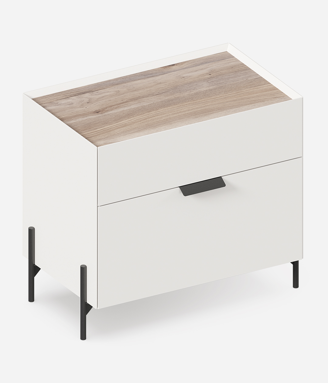 Прикроватная тумба «Лайт» сочетает в себе природную красоту цвета и текстуры дуба и матового белого. Ручки в цвете хром гармонируют с высокими опорами. Коллекция «Лайт» создана для вашего комфорта и уюта.