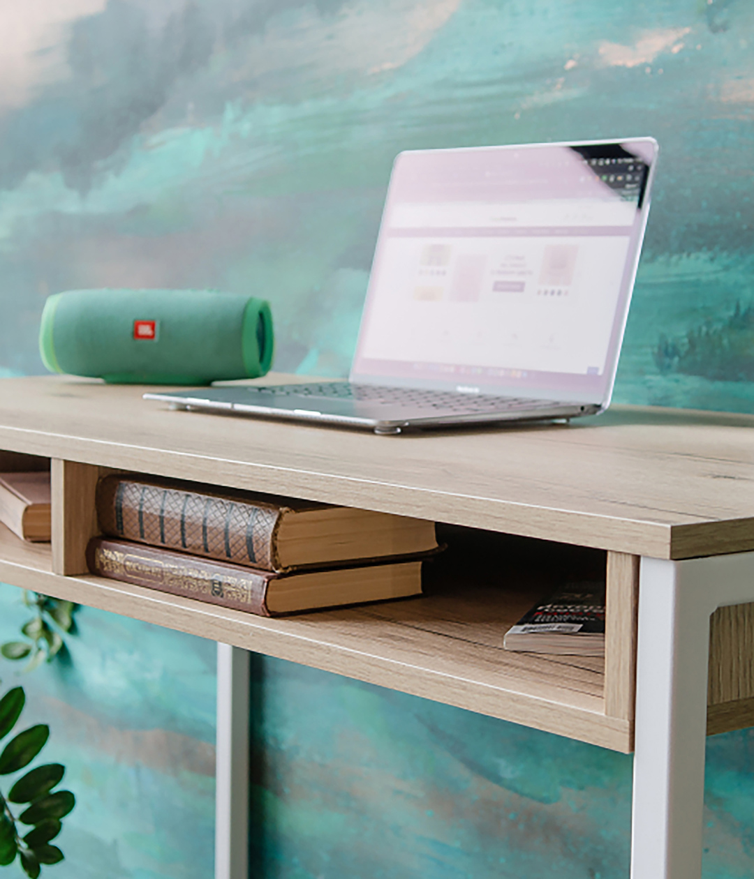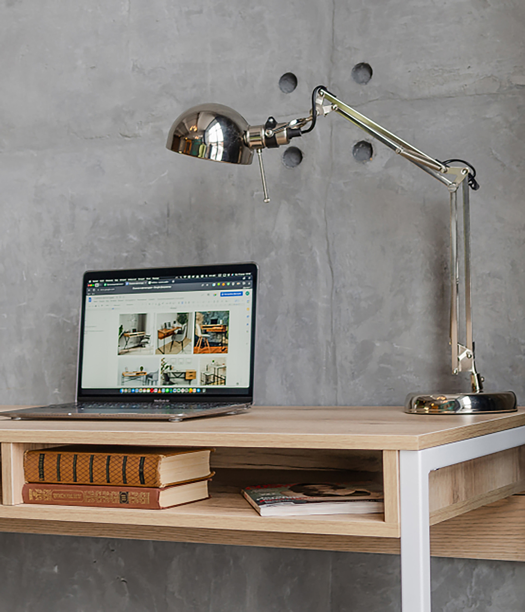 Письменный стол «Леон Лофт» с двумя полками станет центральной частью уютного домашнего или офисного кабинета. Современный и лаконичный дизайн модели выполнен в универсальной цветовой гамме, которая подходит к самым разным стилям оформления.
