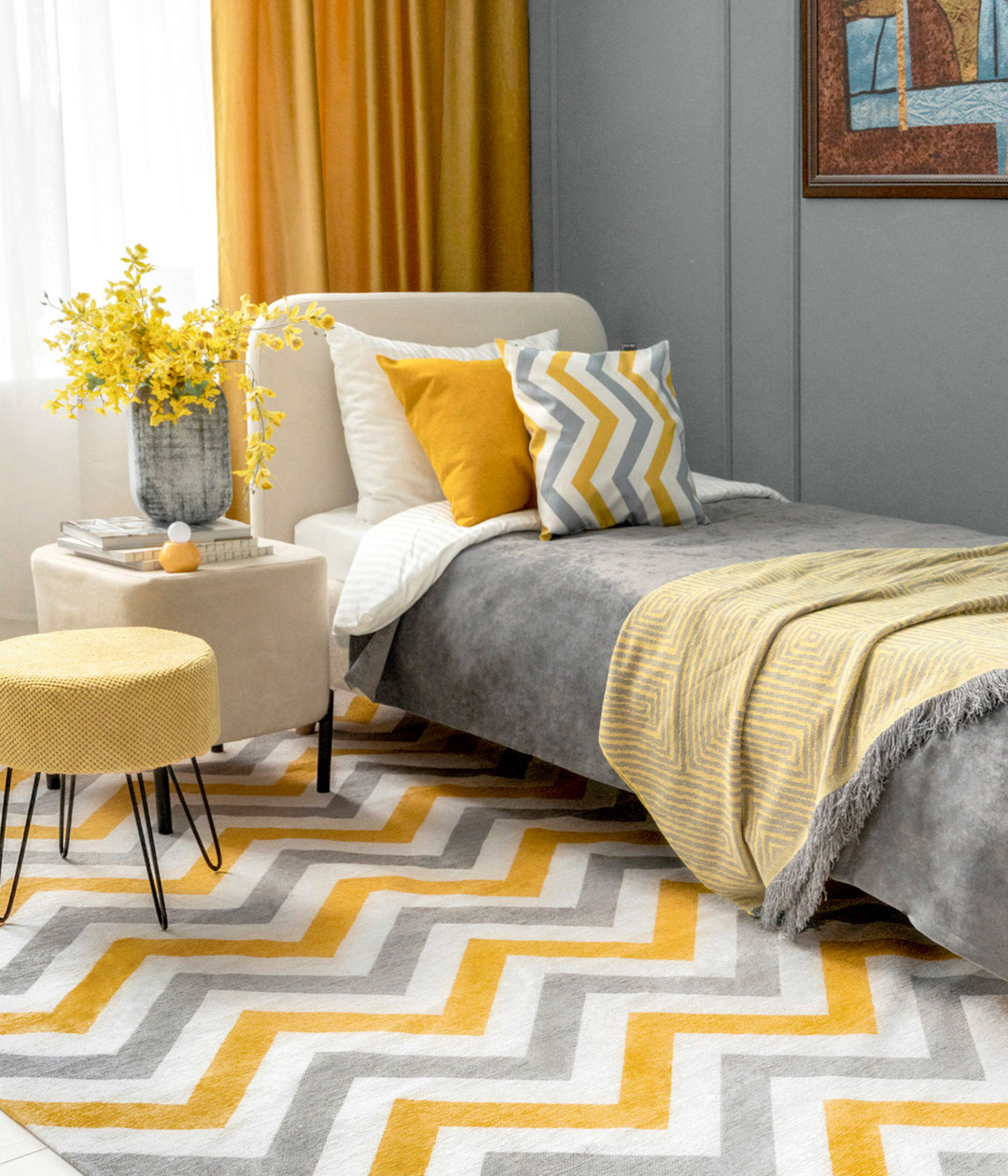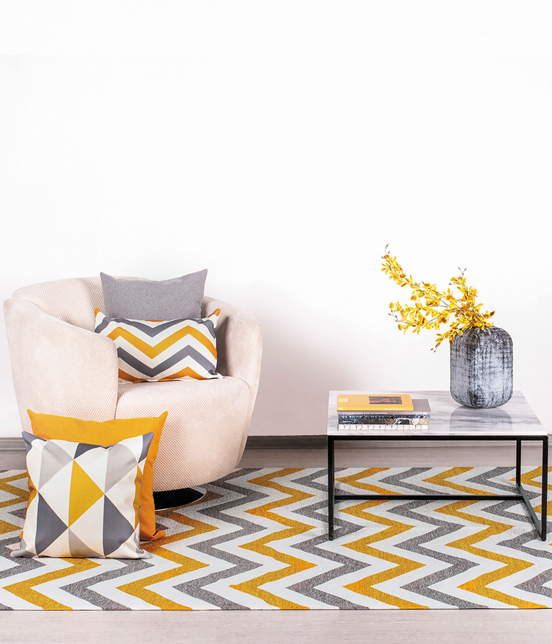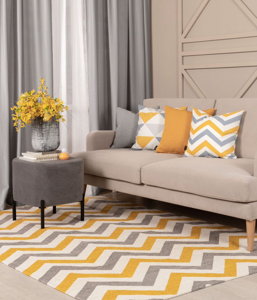 Ковер LINE RIKKO. Лаконичный и яркий дизайн - удачное решение для интерьера в скандинавском стиле. Шенилловая поверхность привлекает своей мягкостью. Наличие в составе натурального хлопка подтверждает экологичность.