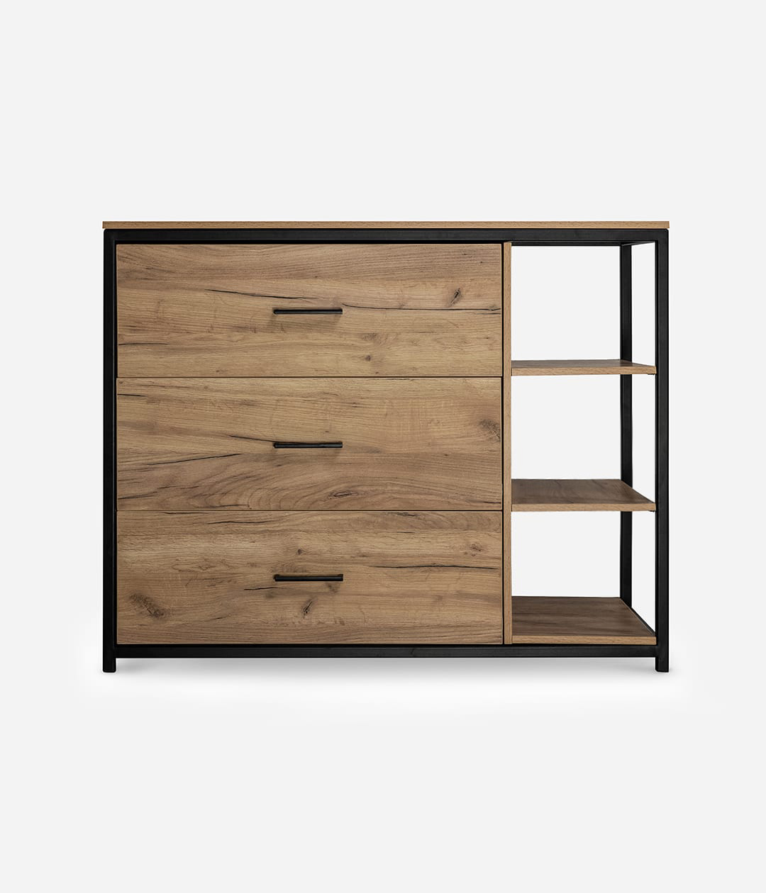 Комод ЛОФТ органично дополнит интерьер в стиле лофт и поможет в поддержании порядка. Этот предмет мебели будет эффектно смотреться в коридоре, в гостиной и даже в ванной комнате. Пришедшие гости не смогут оторвать от него восторженных взглядов.