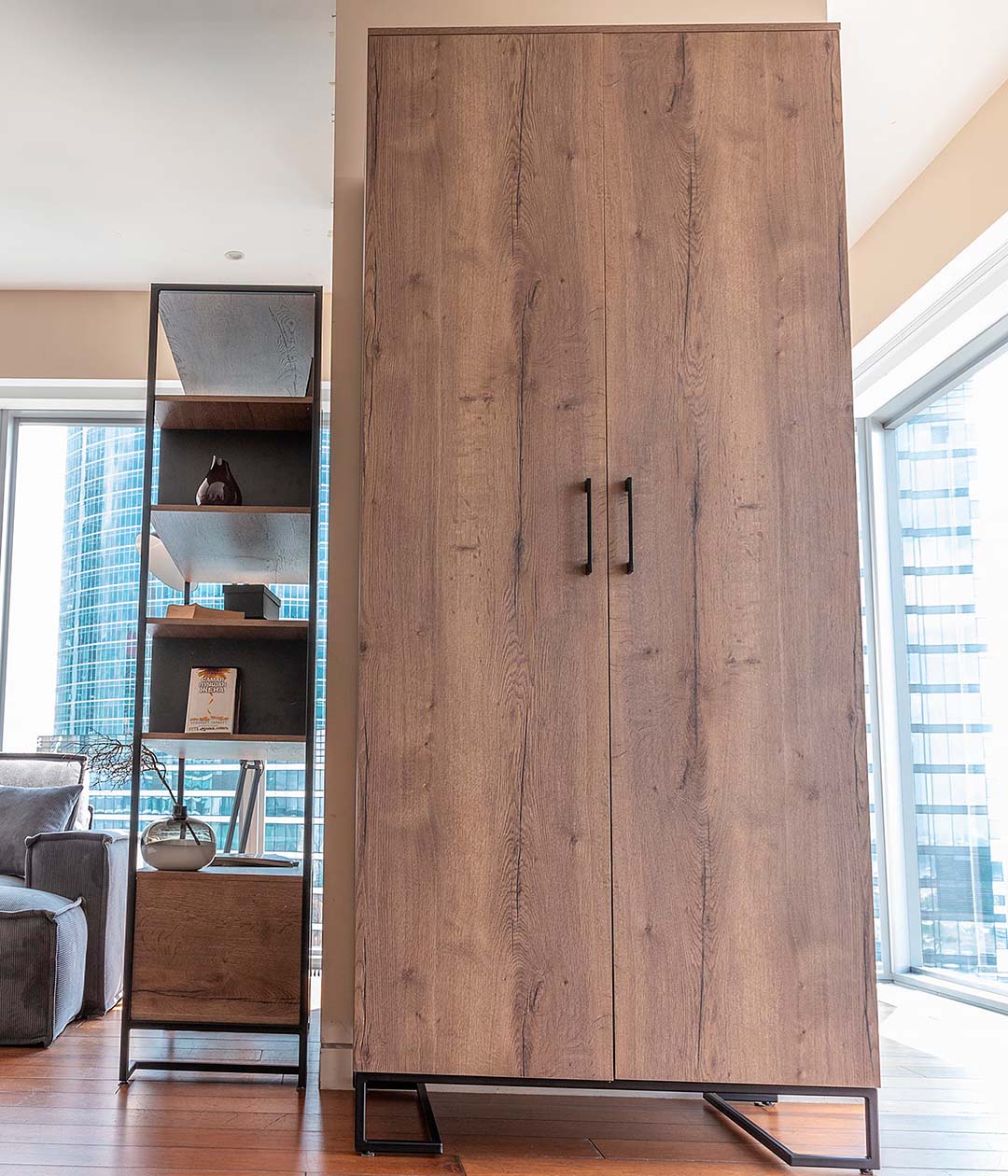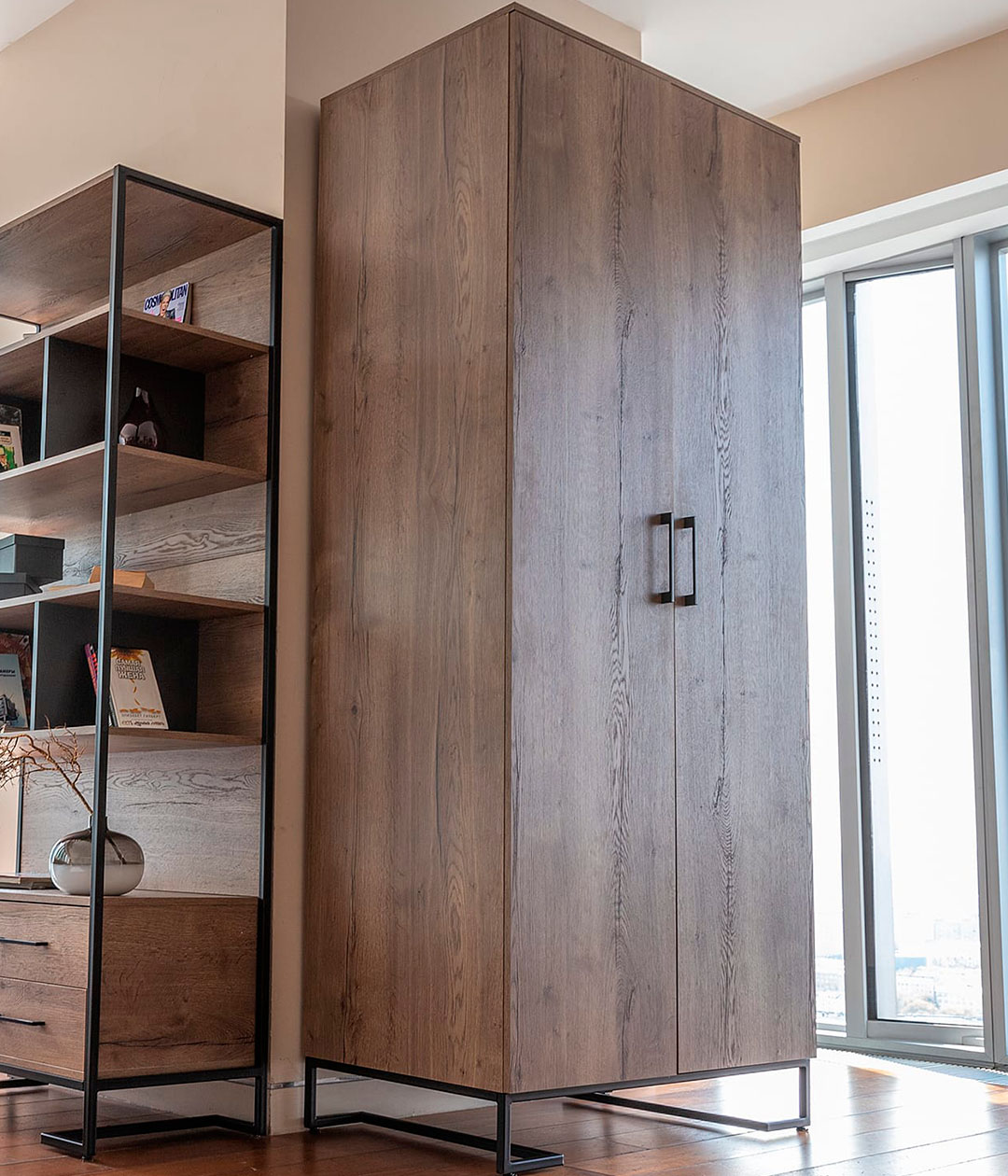 В лофте невероятно свежо смотрятся деревянные шкафы и стеллажи. Их преимущество – ультрасовременная эстетика и максимально эффективное использование пространства. Популярность набирает приобретение шкафов лофт для больших помещений и квартир-студий.