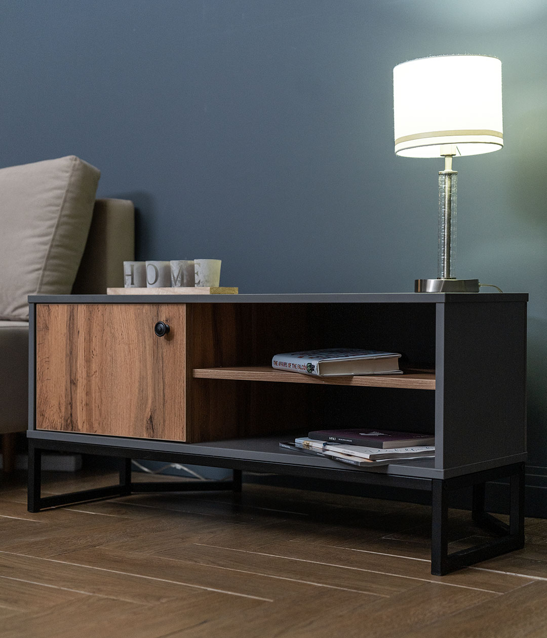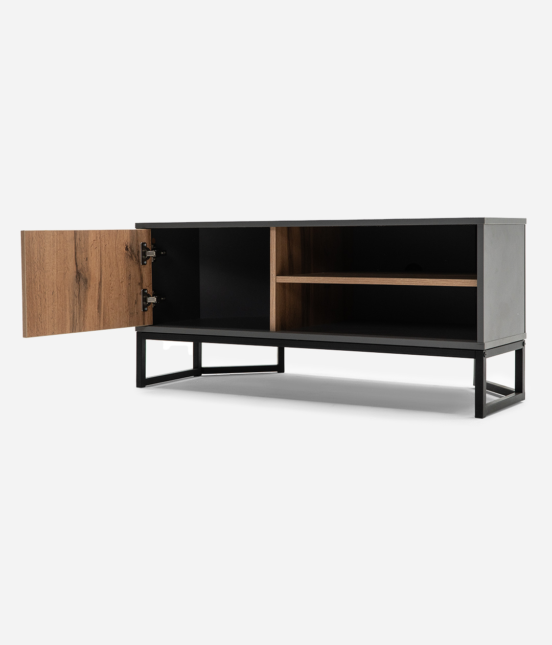 ТВ-тумба Лофт позволит держать на виду любимые вещи и легко разместить всю необходимую аппаратуру. В задней стенке тумбы продуманы отверстия под провода. Шестиугольная форма позволяет установить её в угол помещения. Брутальный дизайн модели будет отлично сочетаться с интерьером в стиле лофт.