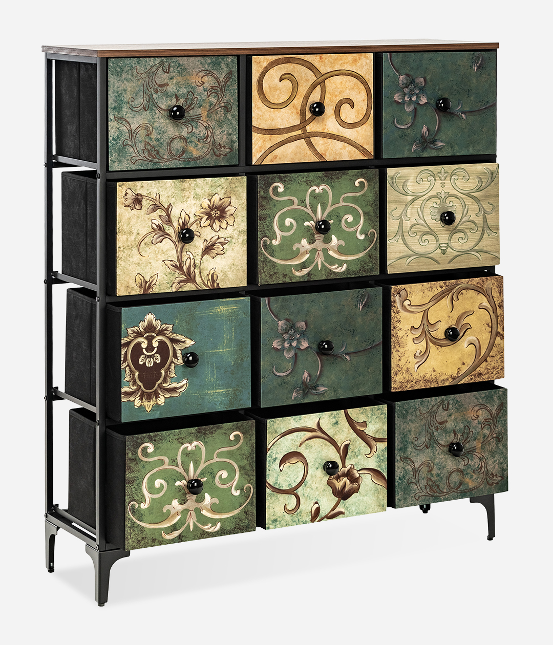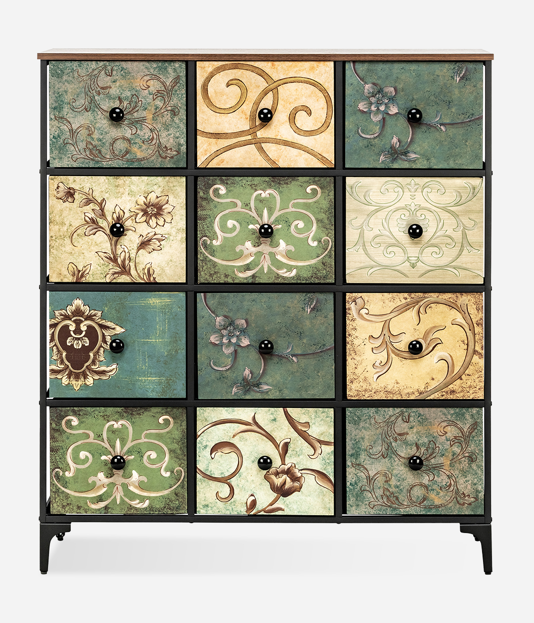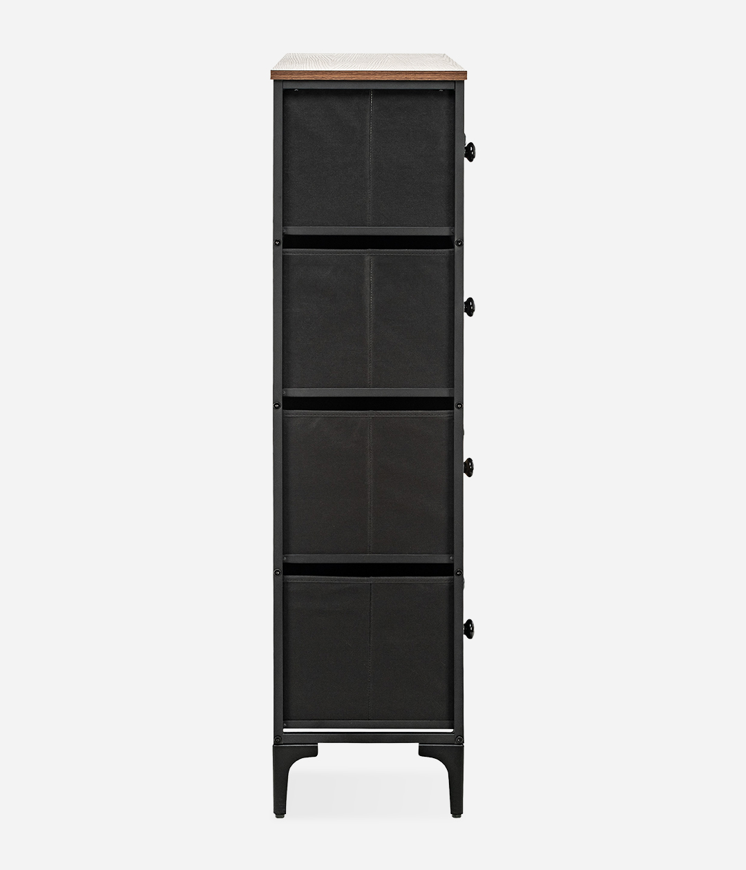 Каркас комода выполнен в черном цвете, что делает его стильным и современным. Черный цвет легко сочетается с любым интерьером и не теряет своей актуальности со временем, а выполненные ящики в разных оттенках позволят использовать данную модель в различных интерьерах.