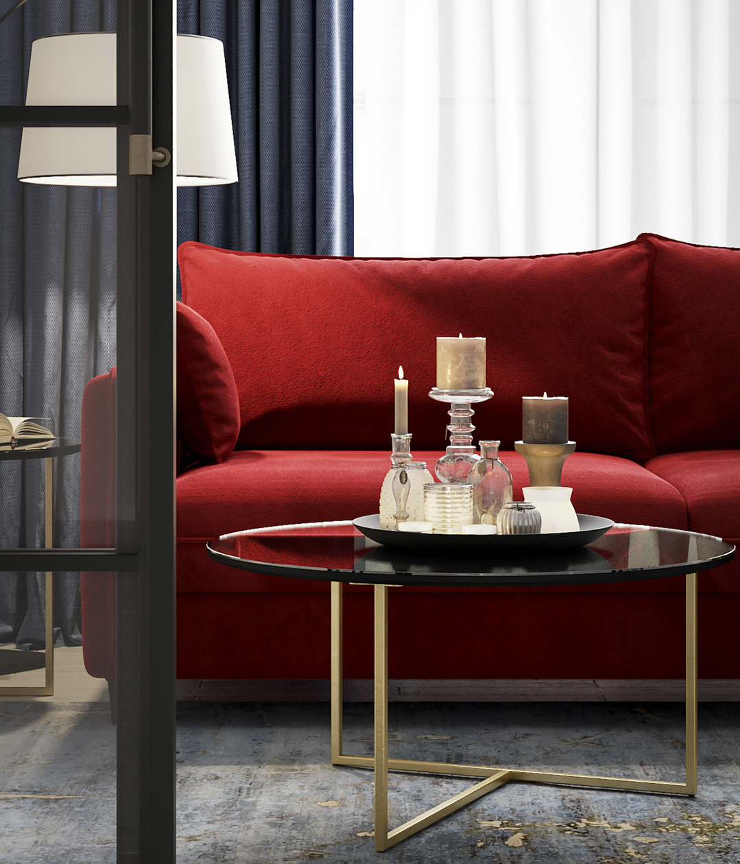 Эстетическая составляющая - столешница с идеально глянцевой поверхностью из стекла Lacobel. Журнальный столик