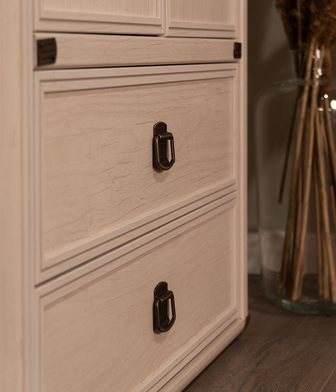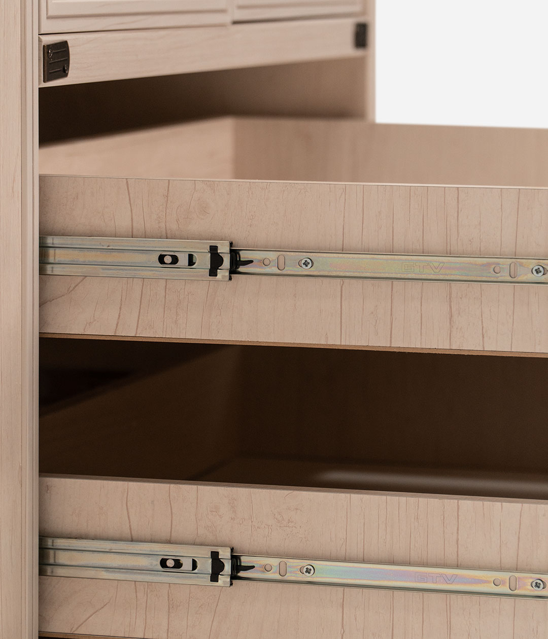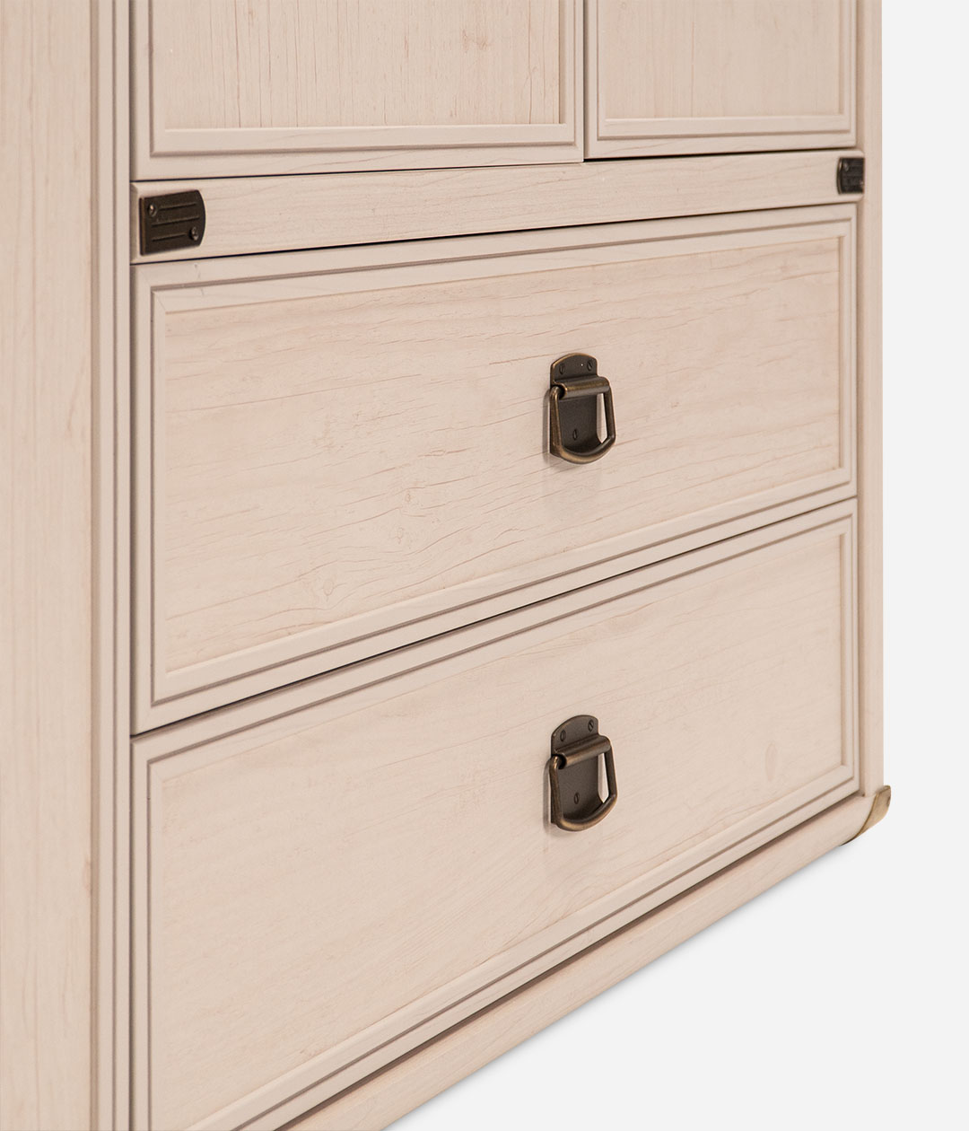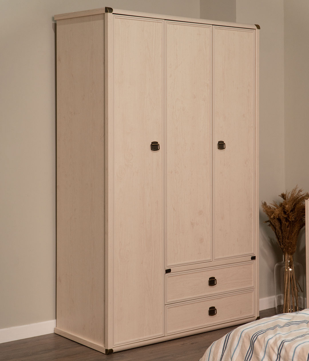 Шкаф платяной Магеллан отличается продуманной функциональностью и стильным исполнением. Системой хранения предусмотрены полочки и выдвижной ящик на шариковых направляющих.