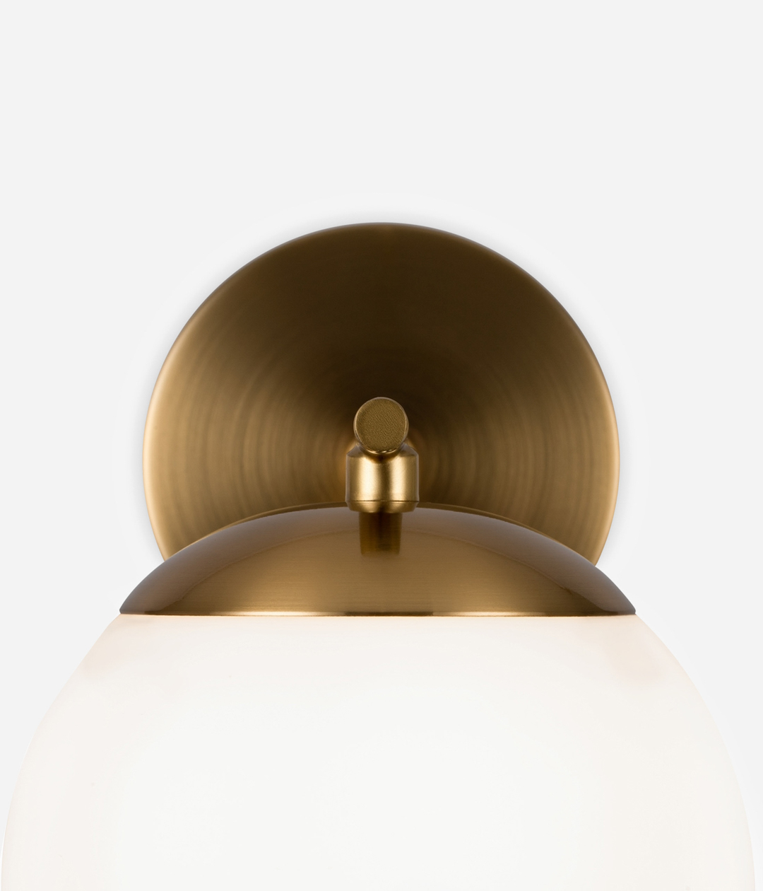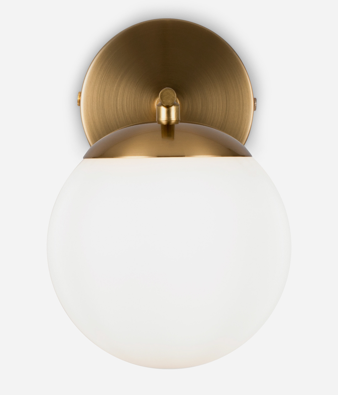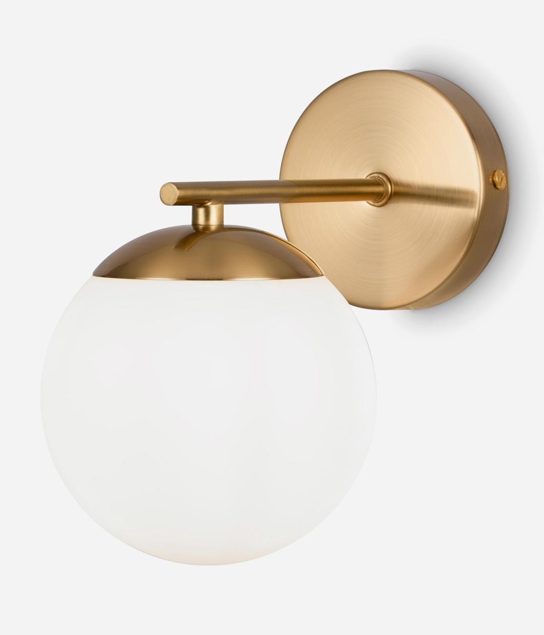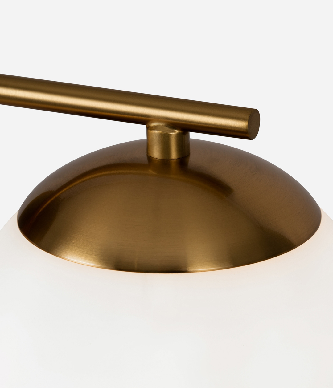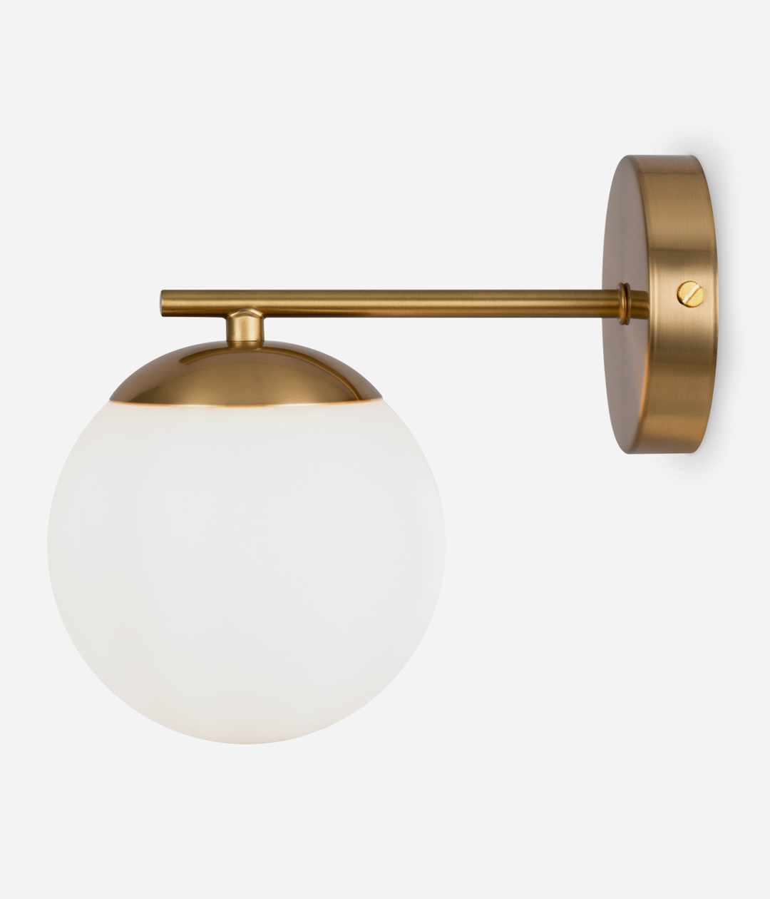 Элегантный дизайн со сдержанным характером модерна середины прошлого столетия. Минималистичная металлическая арматура окрашена в цвет латуни. Сферическая форма плафона обеспечивает равномерное распределение светового потока, а матовое стекло делает его мягким, комфортным для наблюдателя.