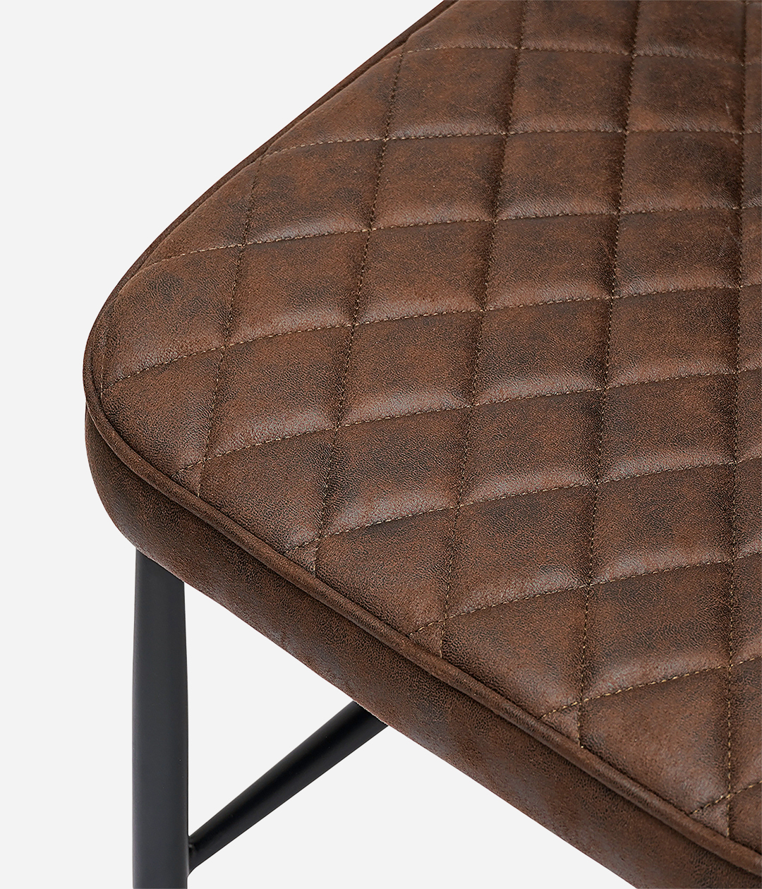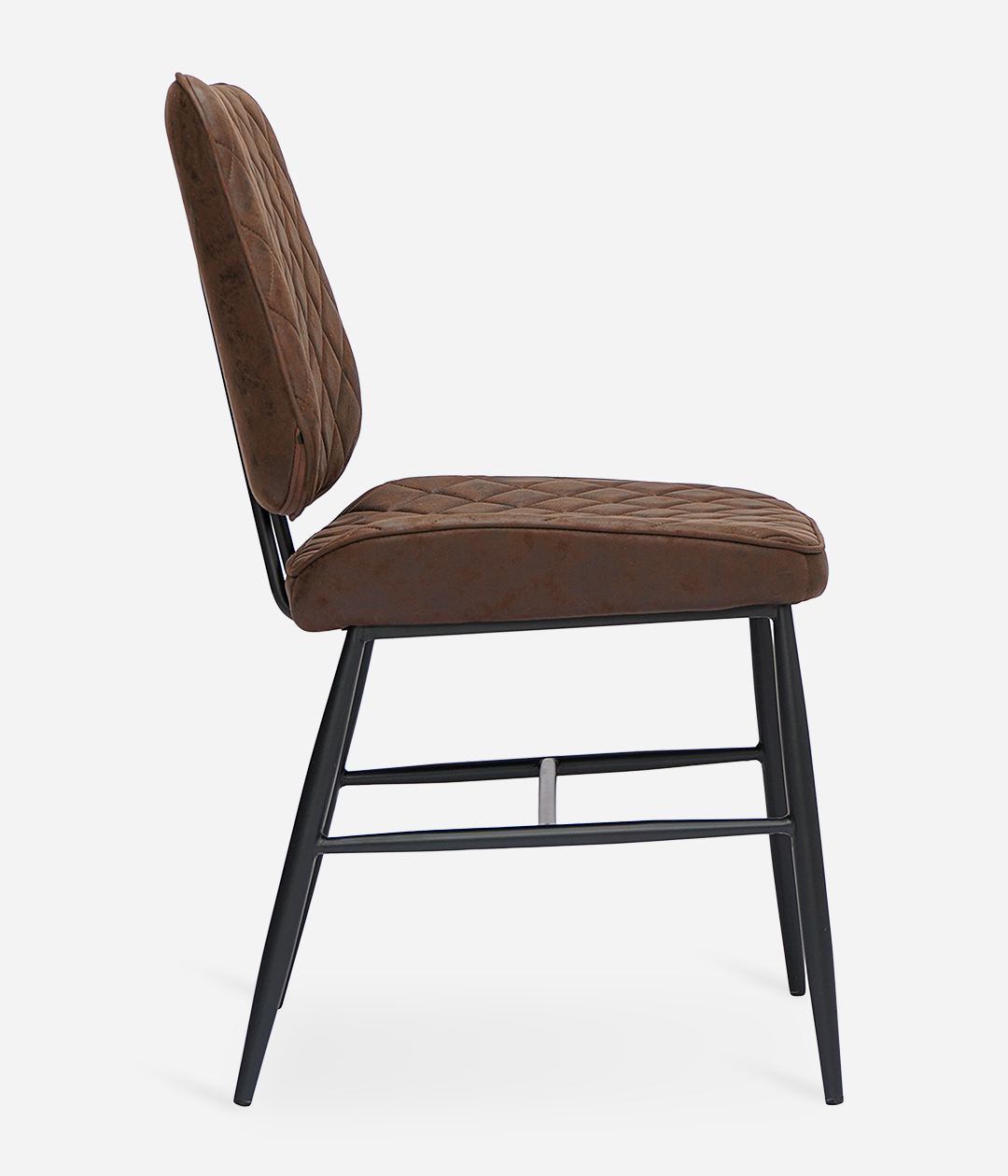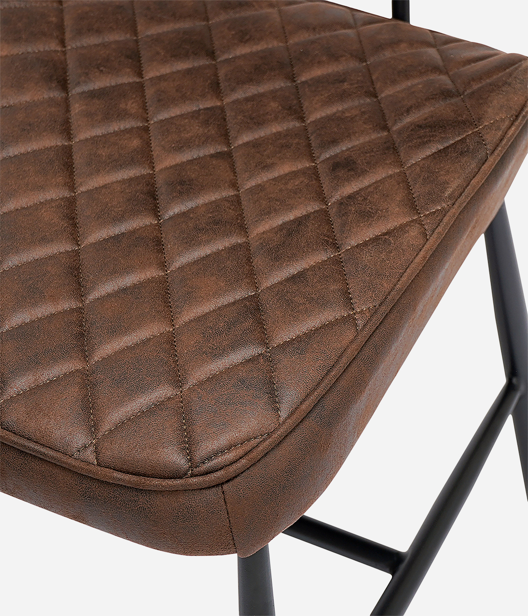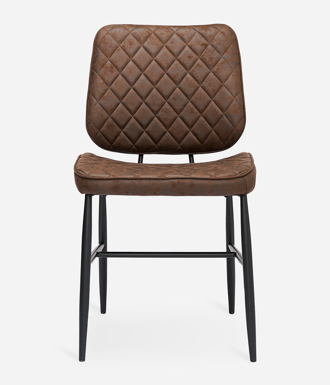 Элегантный, простой стул с современной формой, представляет совершенно новое качество и функциональность. Сиденье стула обито эко-кожей с характерным рисунком треугольников. Каркас 4 металлические черные ножки.