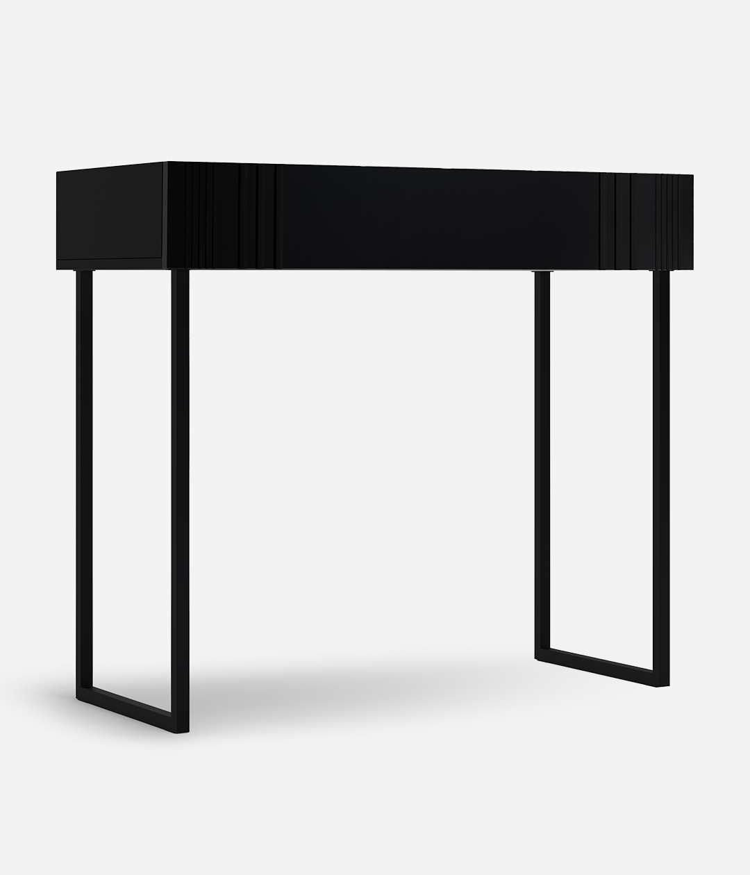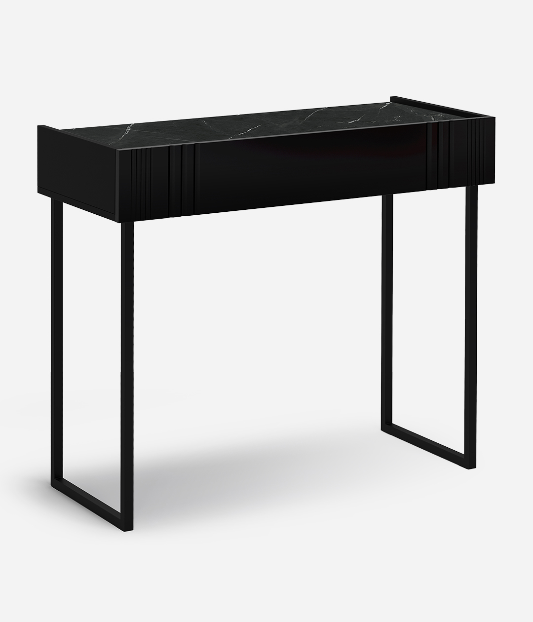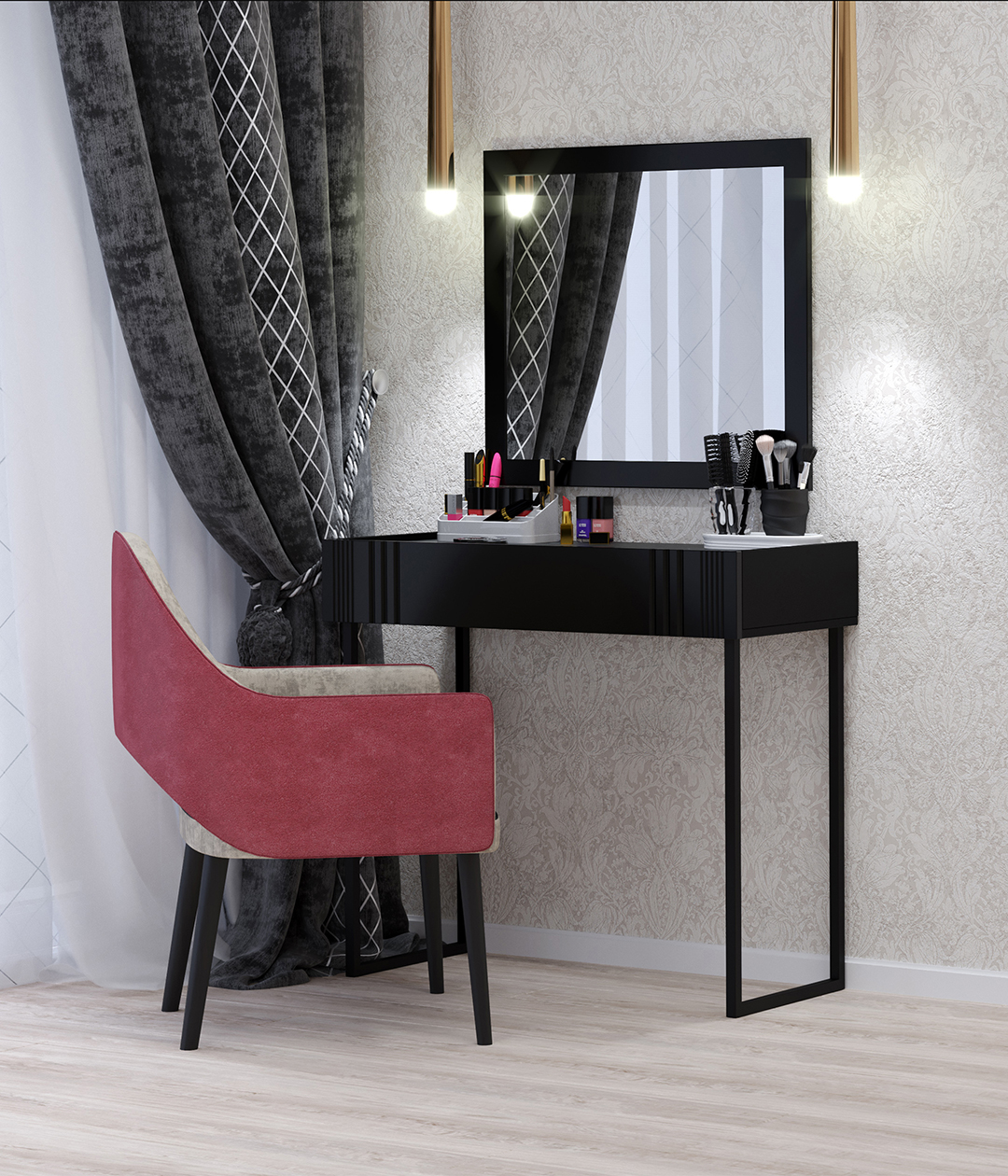 Туалетный стол Марсель имеет яркий и лаконичный дизайн. Столик изготовлен в виде консоли на высоких опорах в стиле лофт. Его конструкция включает широкий выдвижной ящик, который справится с задачей хранения всевозможных мелочей, косметики и аксессуаров.