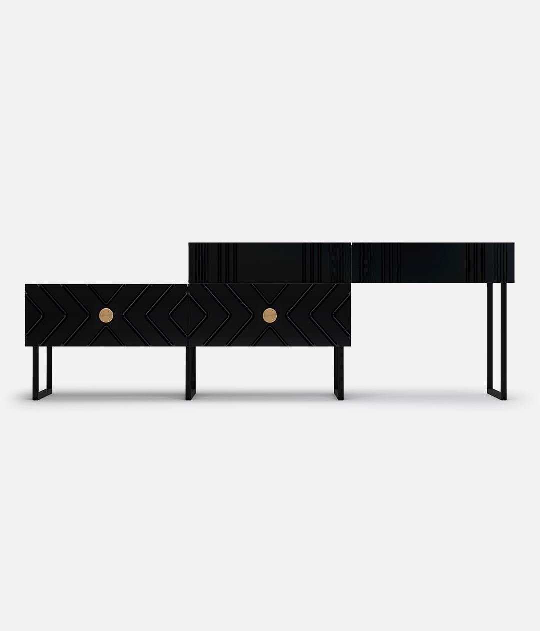 ТВ - тумба «Марсель» имеет необычную и очень привлекательную конструкцию, составные части расположены в виде ступенчатой композиции. На каждом уровне присутствует два выдвижных ящика.
