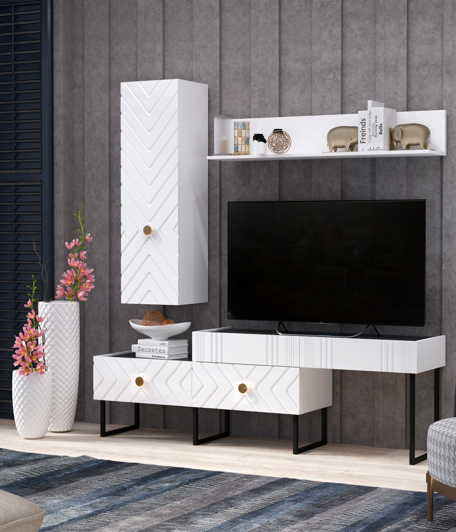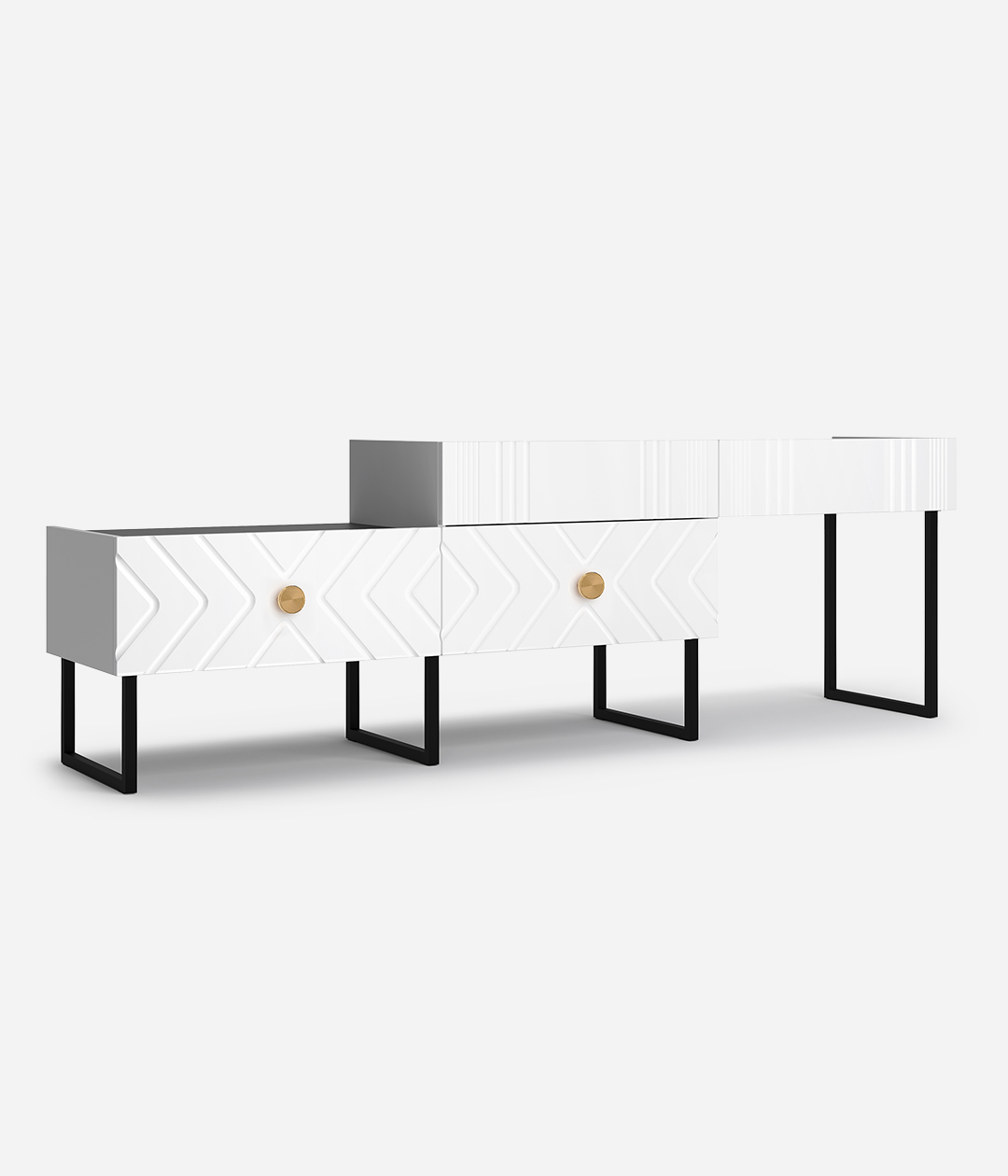 ТВ - тумба «Марсель» имеет необычную и очень привлекательную конструкцию, составные части расположены в виде ступенчатой композиции. На каждом уровне присутствует два выдвижных ящика.