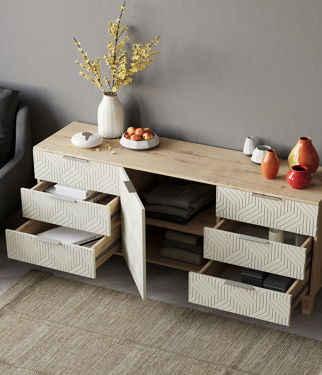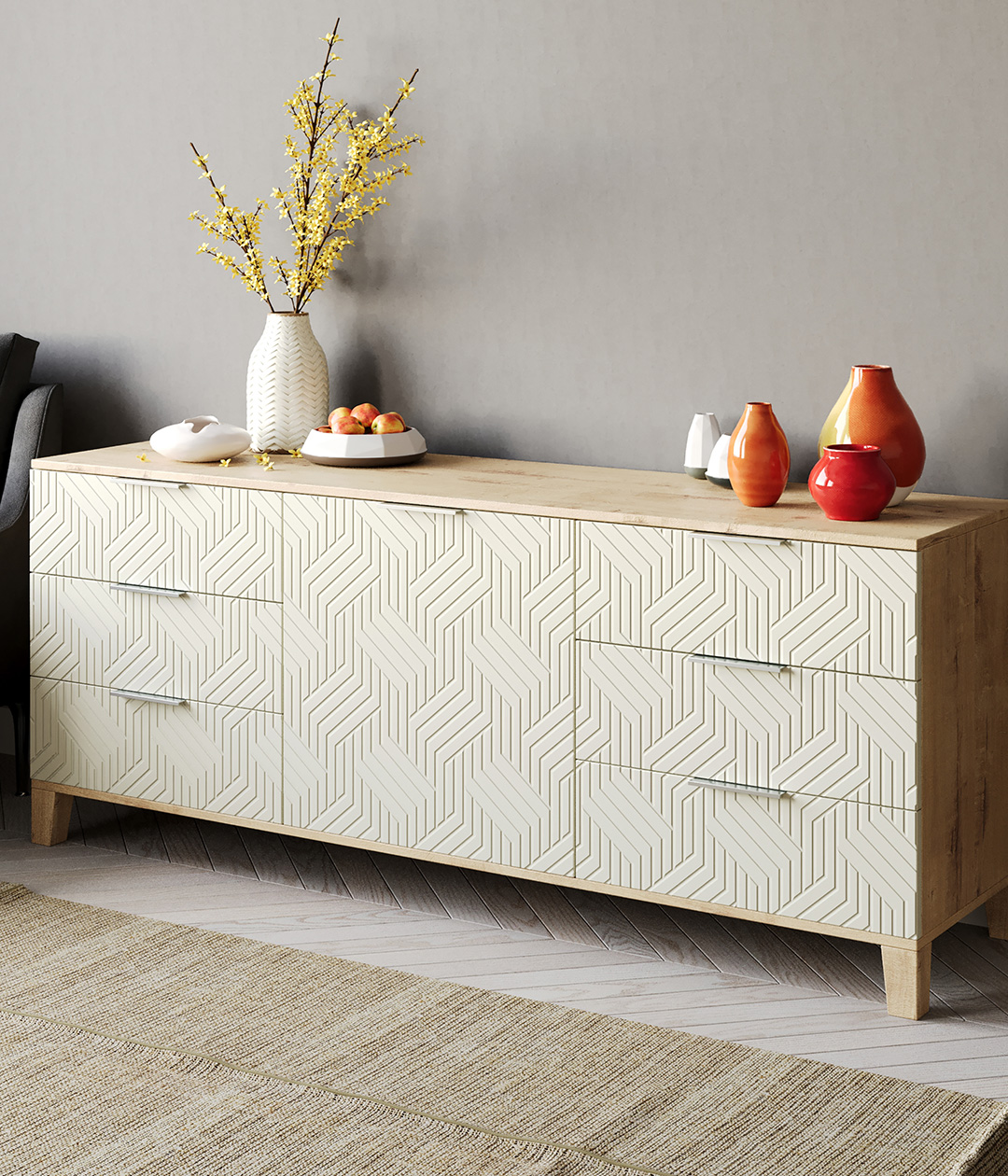 Комод Марвин - это стильное и функциональное решение для вашего интерьера. Узкий комод идеально подойдет для прихожей или гостиной, занимая минимум места и обеспечивая максимум хранения. Комод высокий с ящиками и дверцами позволит удобно организовать пространство для хранения одежды, обуви и различных мелочей.
