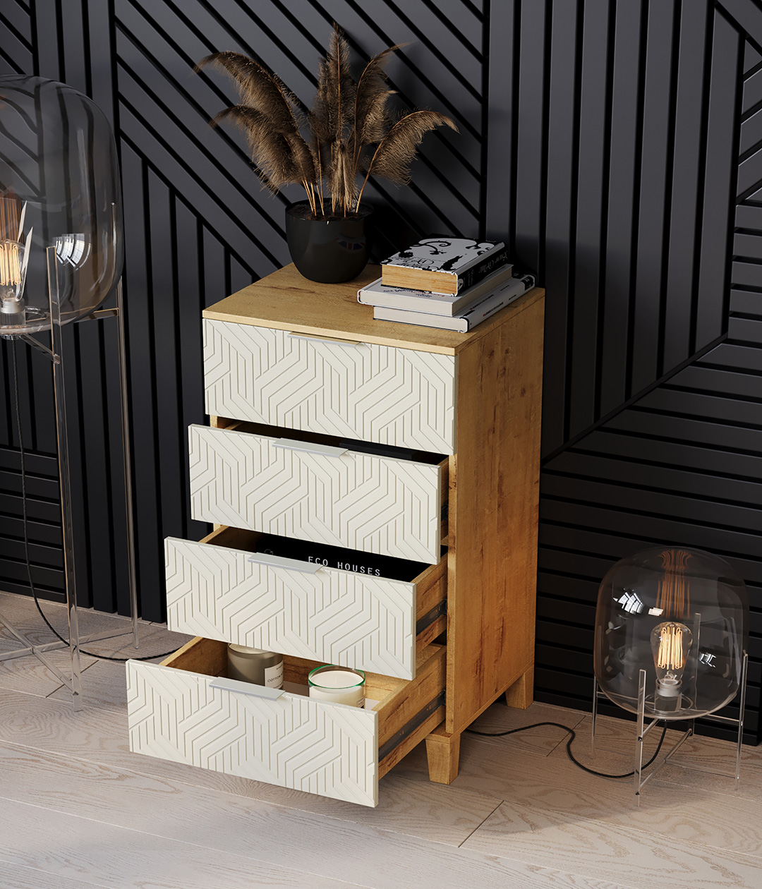 Комод Марвин - это стильное и функциональное решение для вашего интерьера. Узкий комод идеально подойдет для прихожей или гостиной, занимая минимум места и обеспечивая максимум хранения. Комод высокий с ящиками позволит удобно организовать пространство для хранения одежды, обуви и различных мелочей.