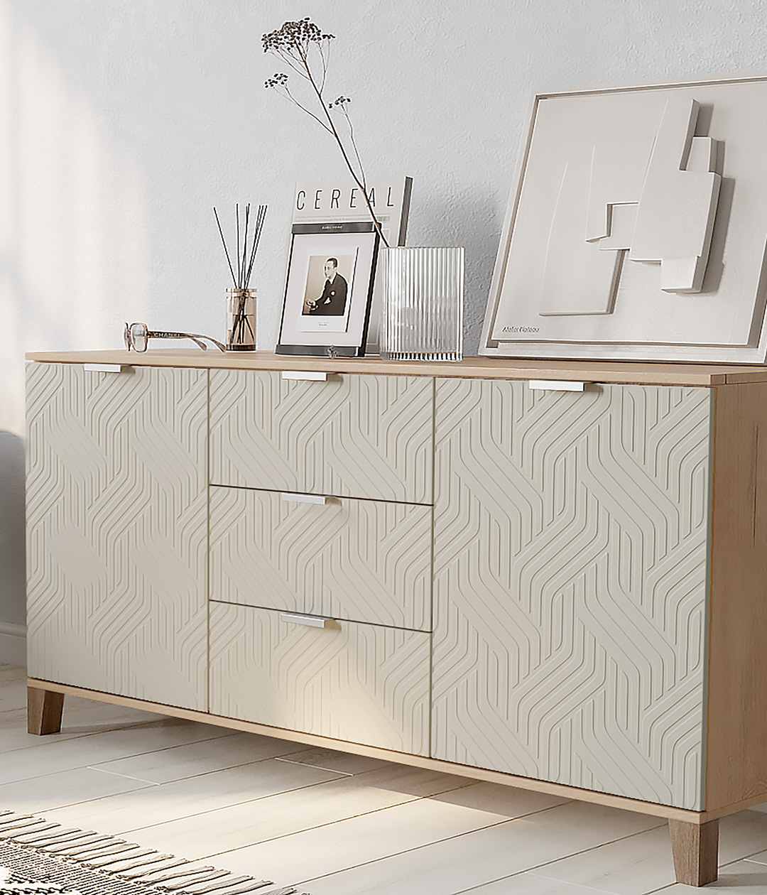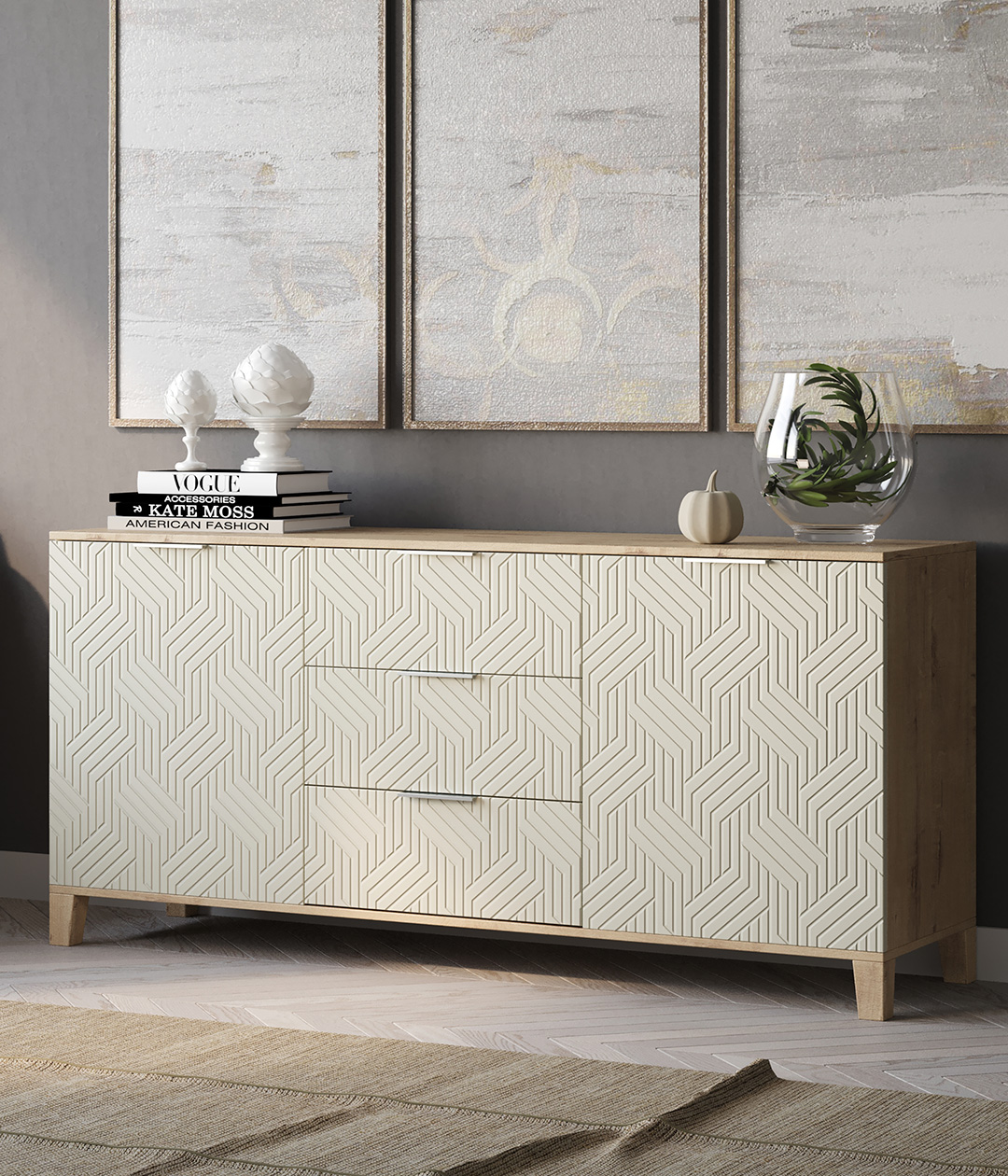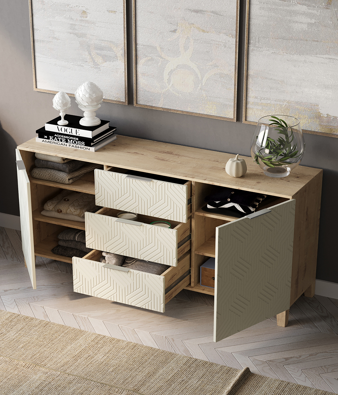 Стильный и практичный комод, решит как минимум две ваших задачи, будет служить многофункциональной нишей для хранения вещей, одежды, белья и универсальной подставкой для различных предметов интерьера, а также можно использовать в виде тумбы под телевизор.