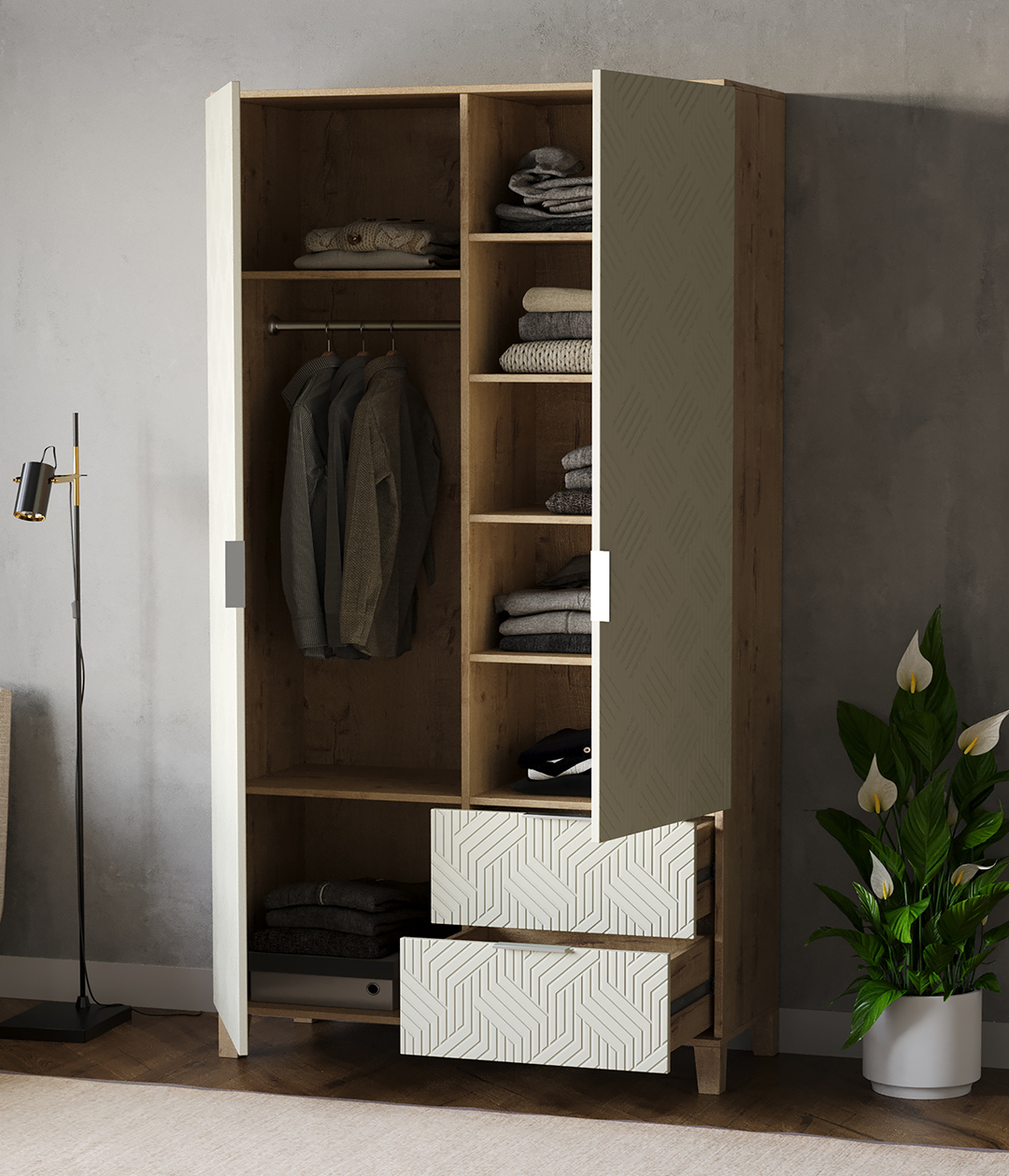 Шкаф для одежды Марвин - это стильное и функциональное решение для вашей спальни, детской комнаты, прихожей или коридора. Этот распашной шкаф объединяет в себе функциональность и современный дизайн. Благодаря его размерам (100х210х40 см), в него легко можно уместить большое количество вещей.