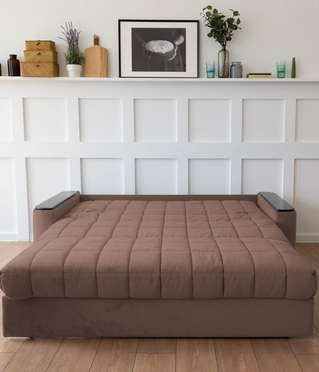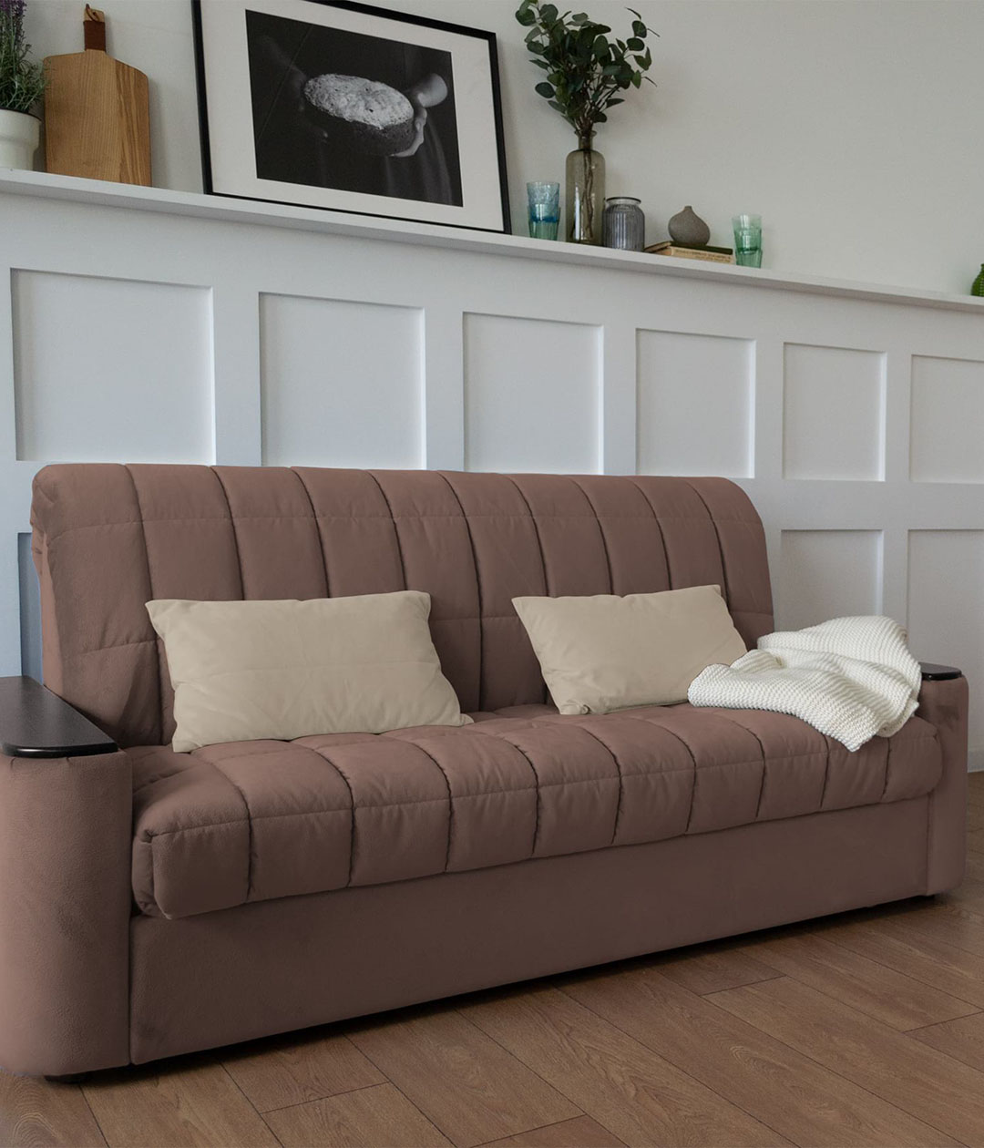 Диван-аккордеон Милтон – идеальное решение для тех, кто ценит функциональность и комфорт. В сложенном виде он занимает минимум пространства, что делает его отличным выбором для небольших комнат. Однако, разложив его, вы получите просторное и удобное спальное место. Накладки на подлокотниках добавляют комфорта и практичности. Этот диван гармонично сочетает стиль и удобство, превращая любую комнату в уютное место для отдыха и сна.