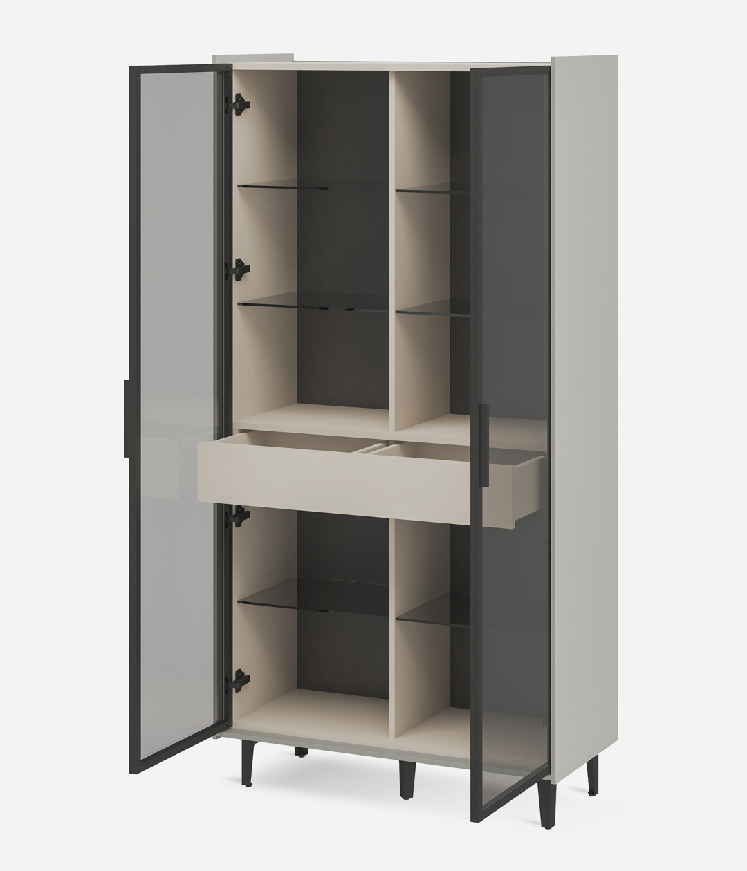 Шкаф-витрина «Модена» — это прекрасное решение для комнаты в современном стиле. Фасады со стеклом позволят хранить столовый сервиз, книги и предметы декора. Благодаря тонированному стеклу шкаф сам по себе является стильным элементом интерьера, построенного со вкусом.